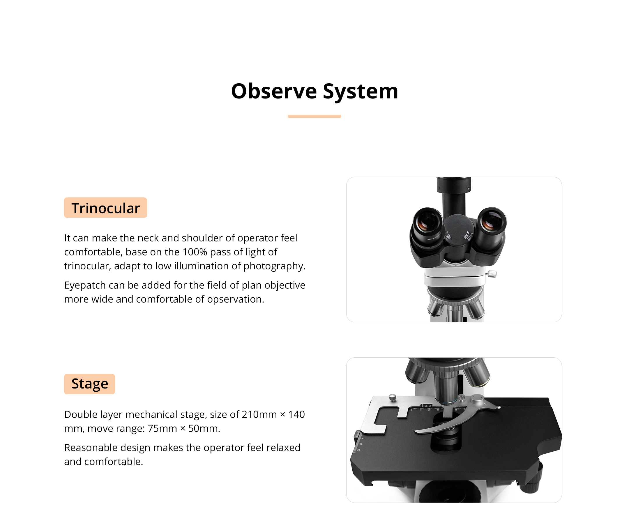 Double layer mechanical stage and overall size: 210 mm × 140 mm, |