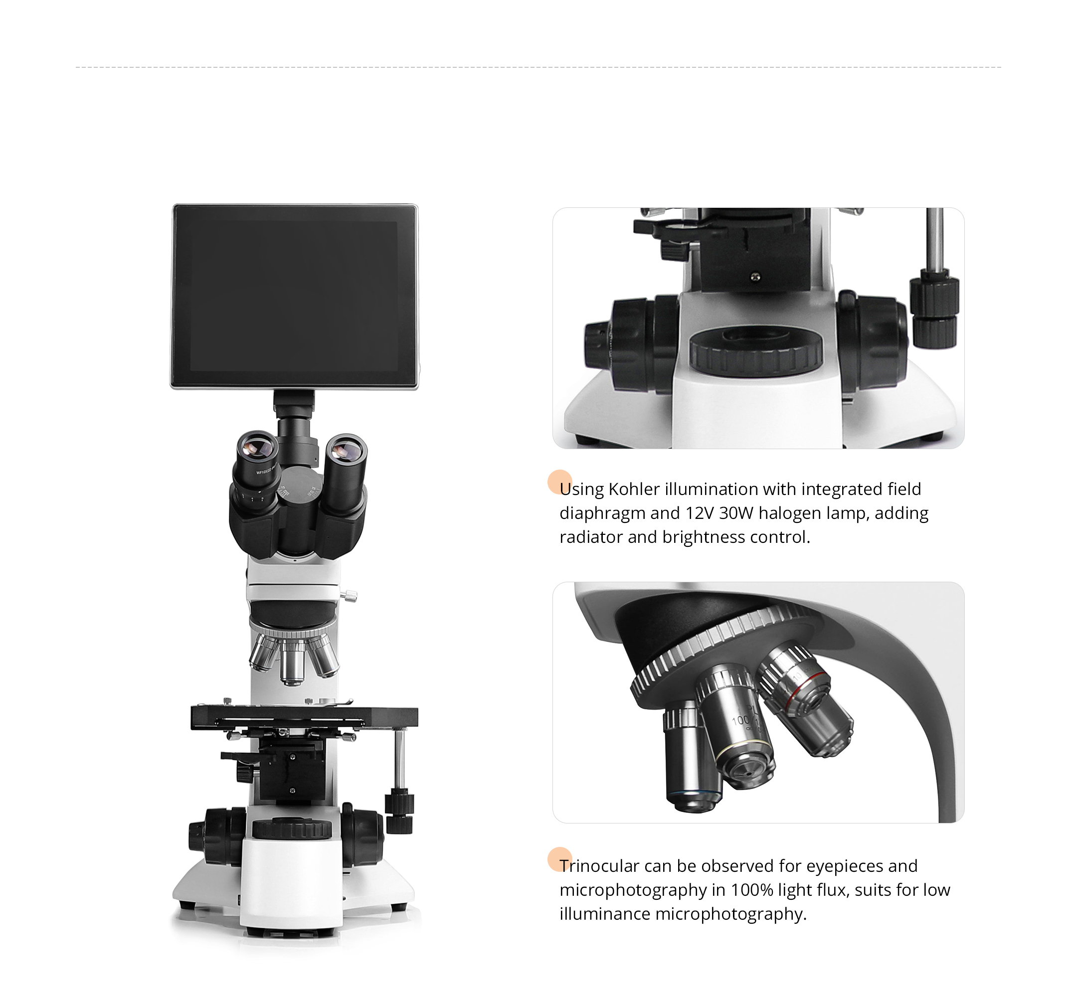 HTG Trinocular (Inclination of 30 ˚); Eye point height adjustable |