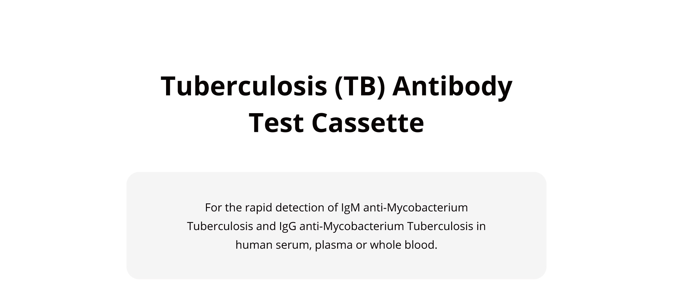 For the rapid detection of IgM anti-Mycobacterium Tuberculosis and IgG anti-Mycobacterium Tuberculosis in human serum, plasma or whole blood.