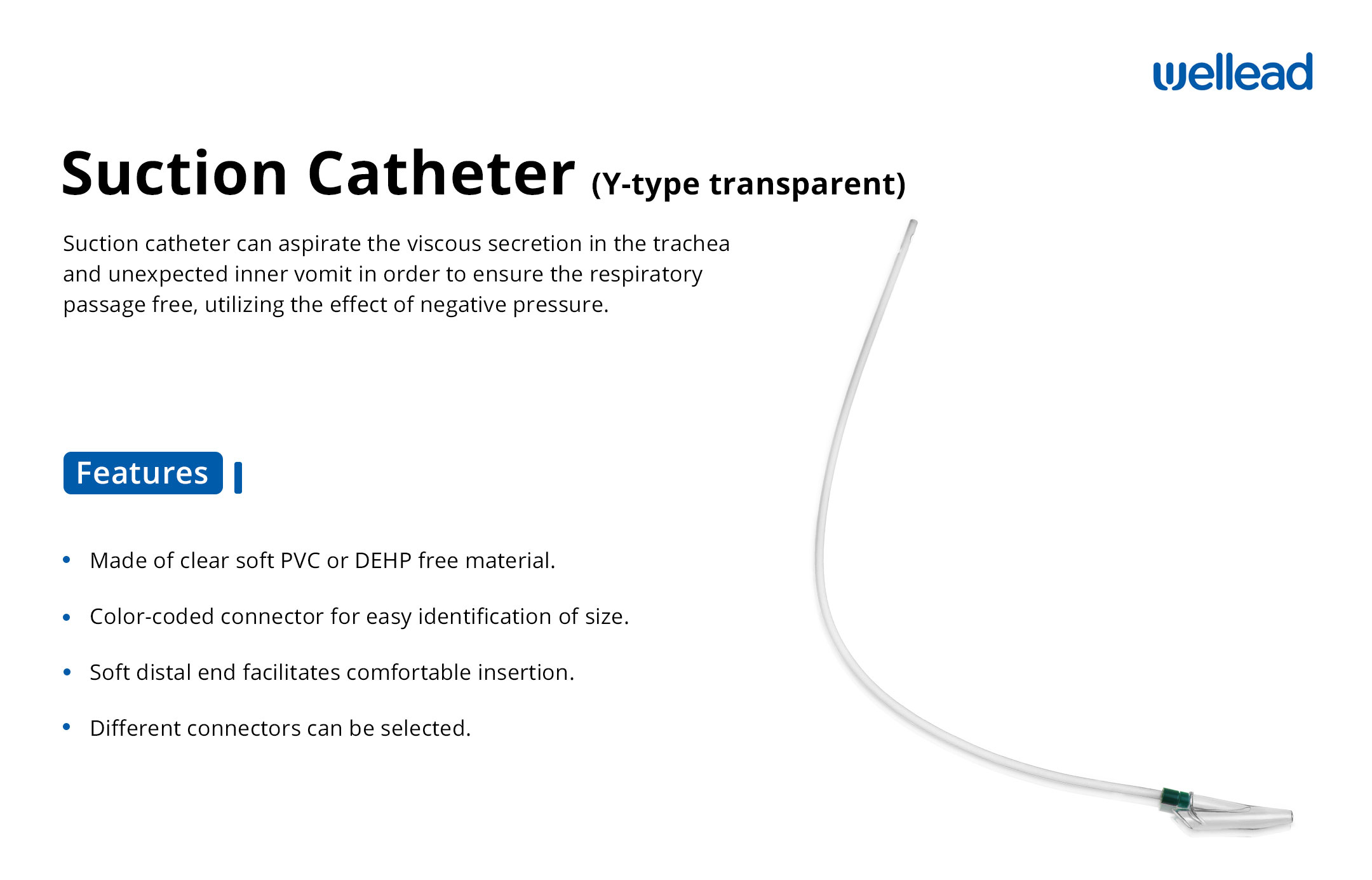 Suction catheter can aspirate the viscous secretion in the trachea and unexpected inner vomit in order to ensure the respiratory passage free, utilizing the effect of negative pressure.