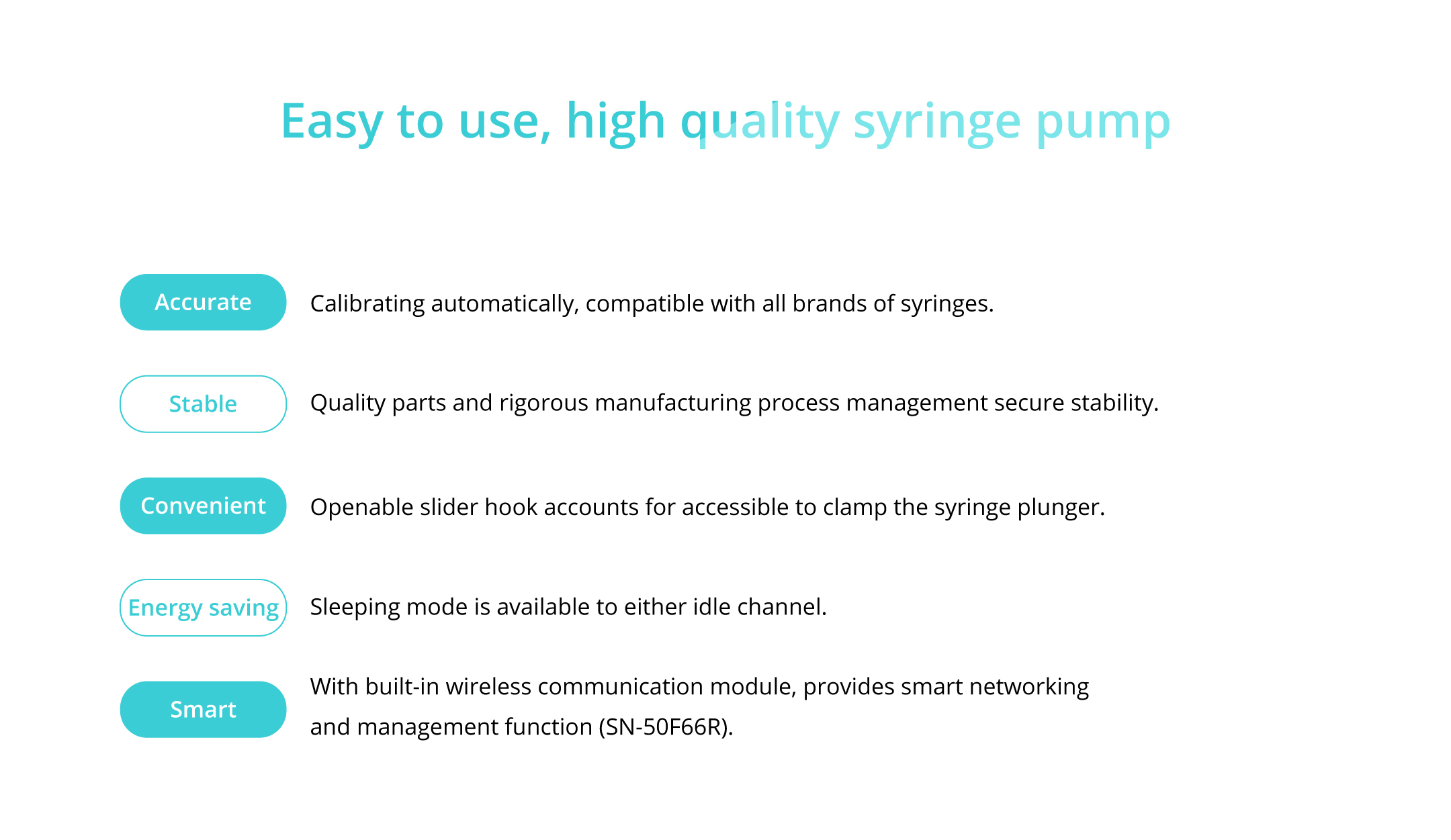 It features automated calibration and accurate precised injection process. Two channels works simultaneously and sleeping mode is available for either idle channel.