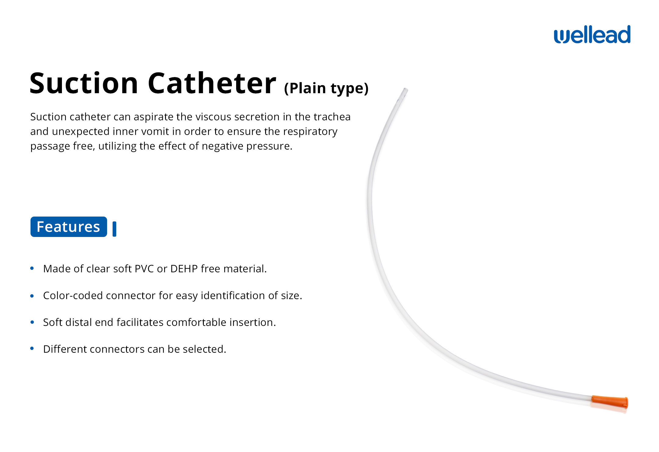 Suction catheter can aspirate the viscous secretion in the trachea and unexpected inner vomit in order to ensure the respiratory passage free, utilizing the effect of negative pressure.