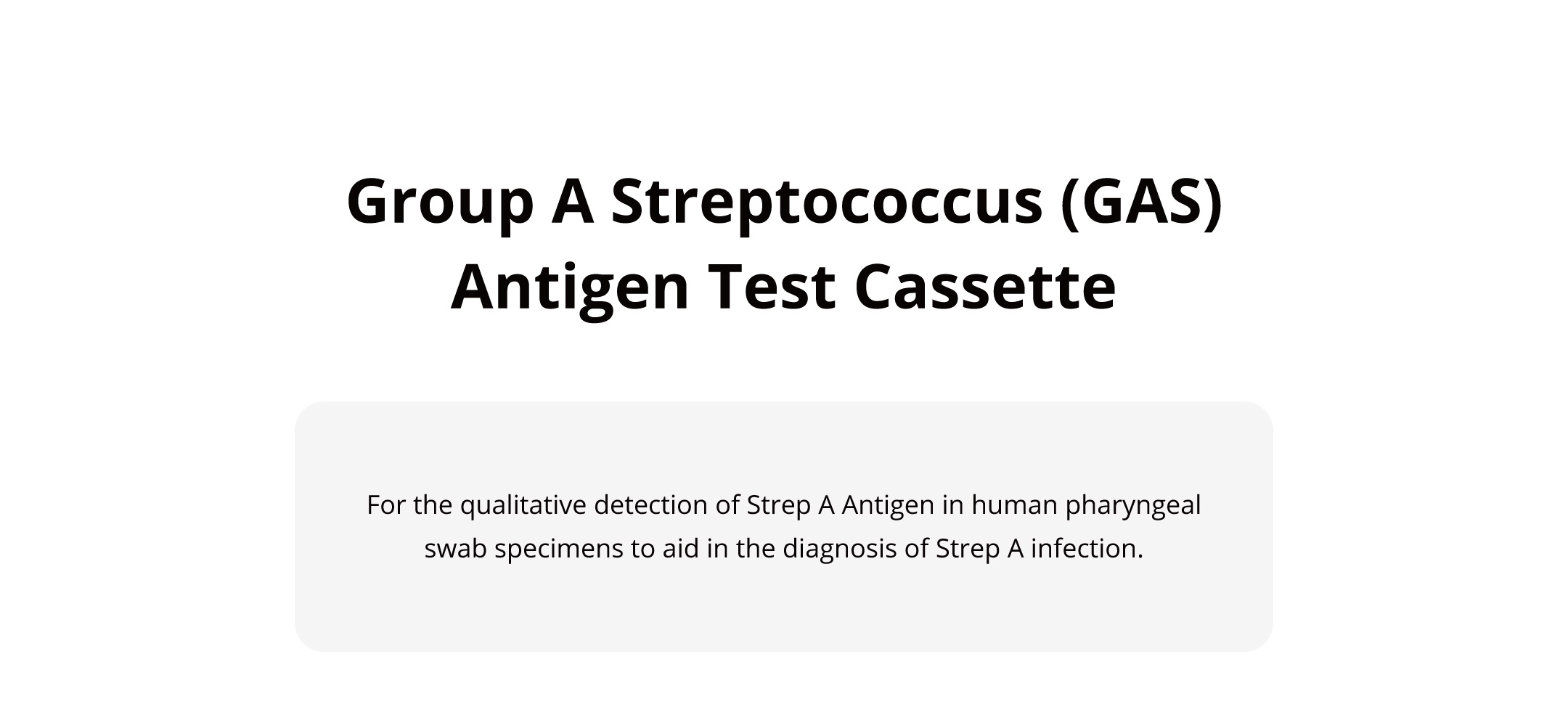 For the qualitative detection of Strep A Antigen in human pharyngeal swab specimens to aid in the diagnosis of Strep A infection.