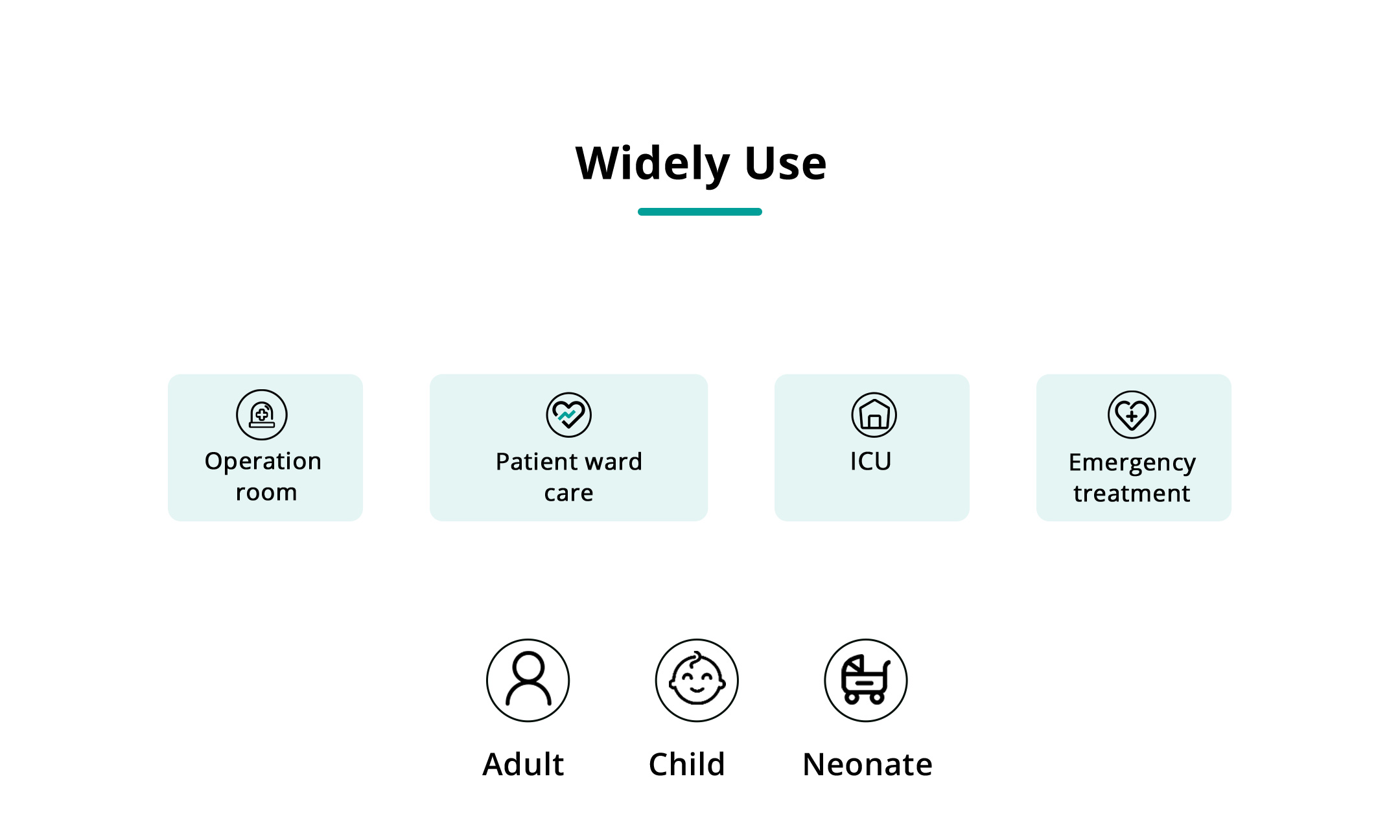 Measuring range of heart rate: (Adult) 15 bpm ~ 300 bpm (Pedi) 15 bpm ~ 350 bpm (Neonate) 15 bpm ~ 350 bpm |
