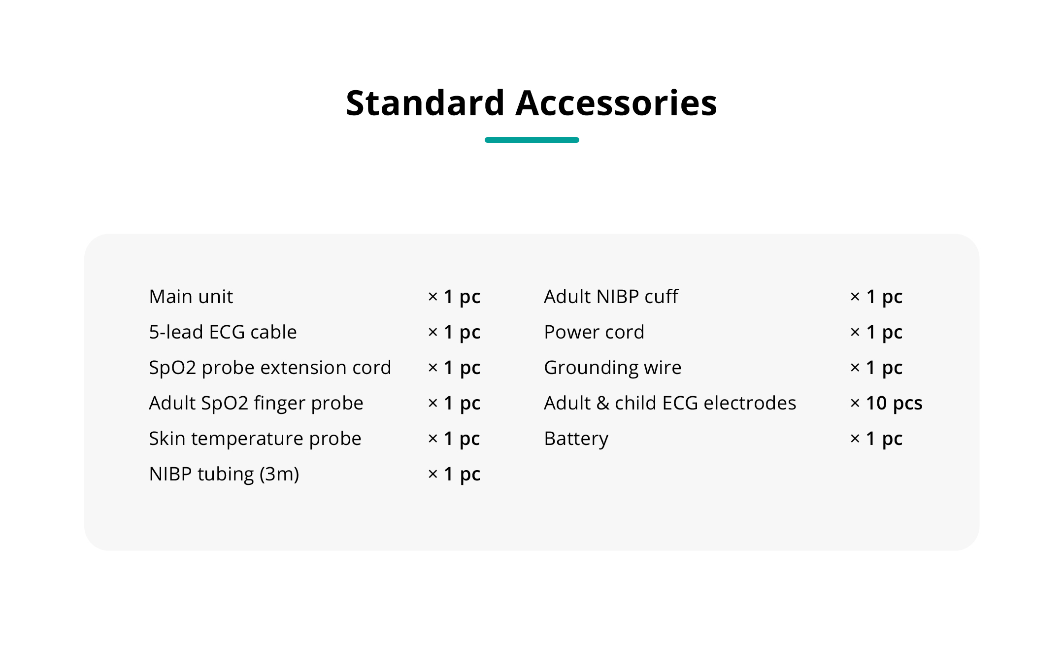 Lead selection: I, II, III (optional) / I, II, III, aVR, aVL, aVF, V / I, II, III, aVR, aVL, aVF, V1 ~ V6 (optional) |