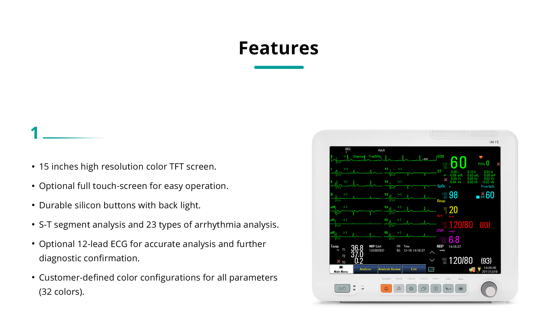Input mode: 3-lead ECG input (optional) / 5-lead ECG input (standard) / 12-lead ECG input (optional) |