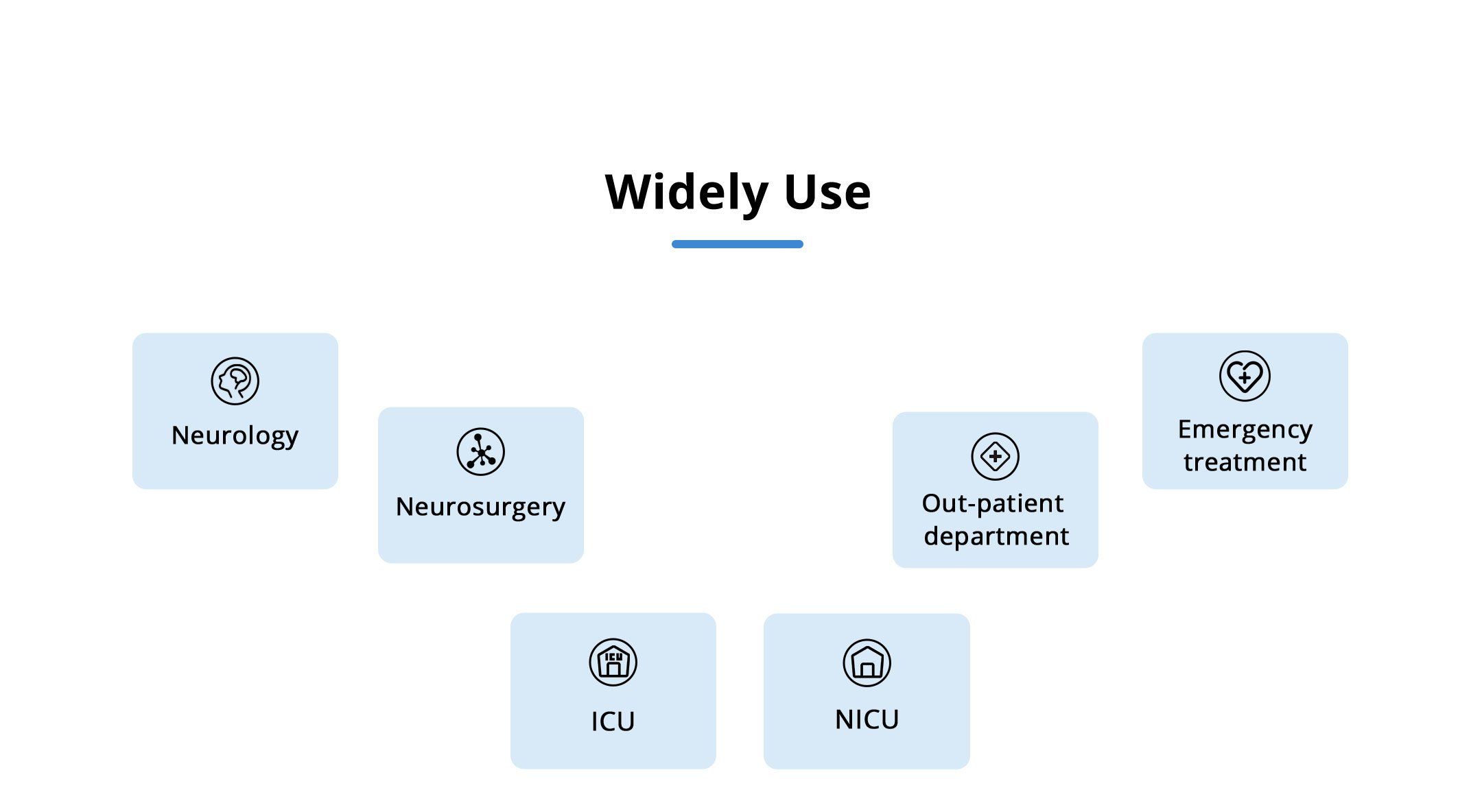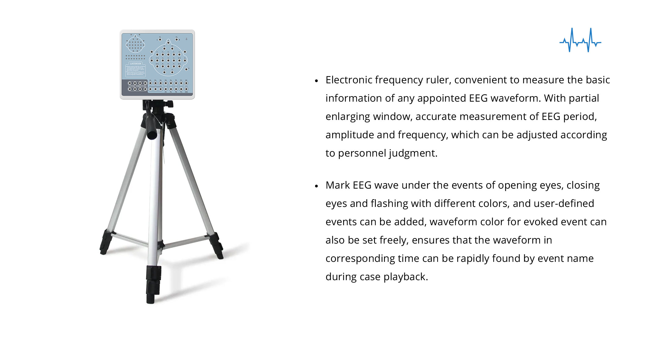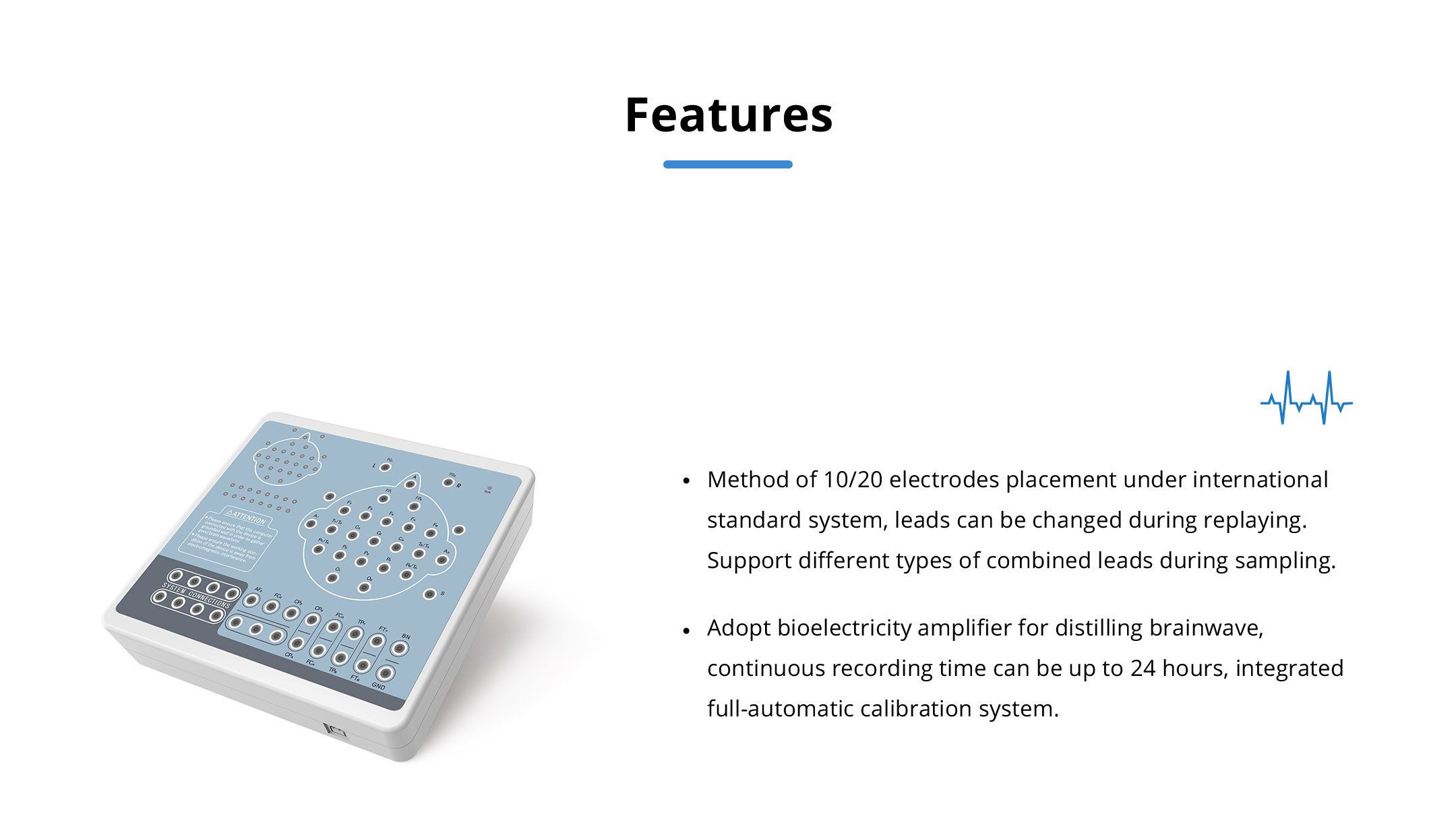 Collects EEG signal with electrodes, via integrated amplification, A/D transformation, PC auto-analysis, FFT, to form electroencephalogram.