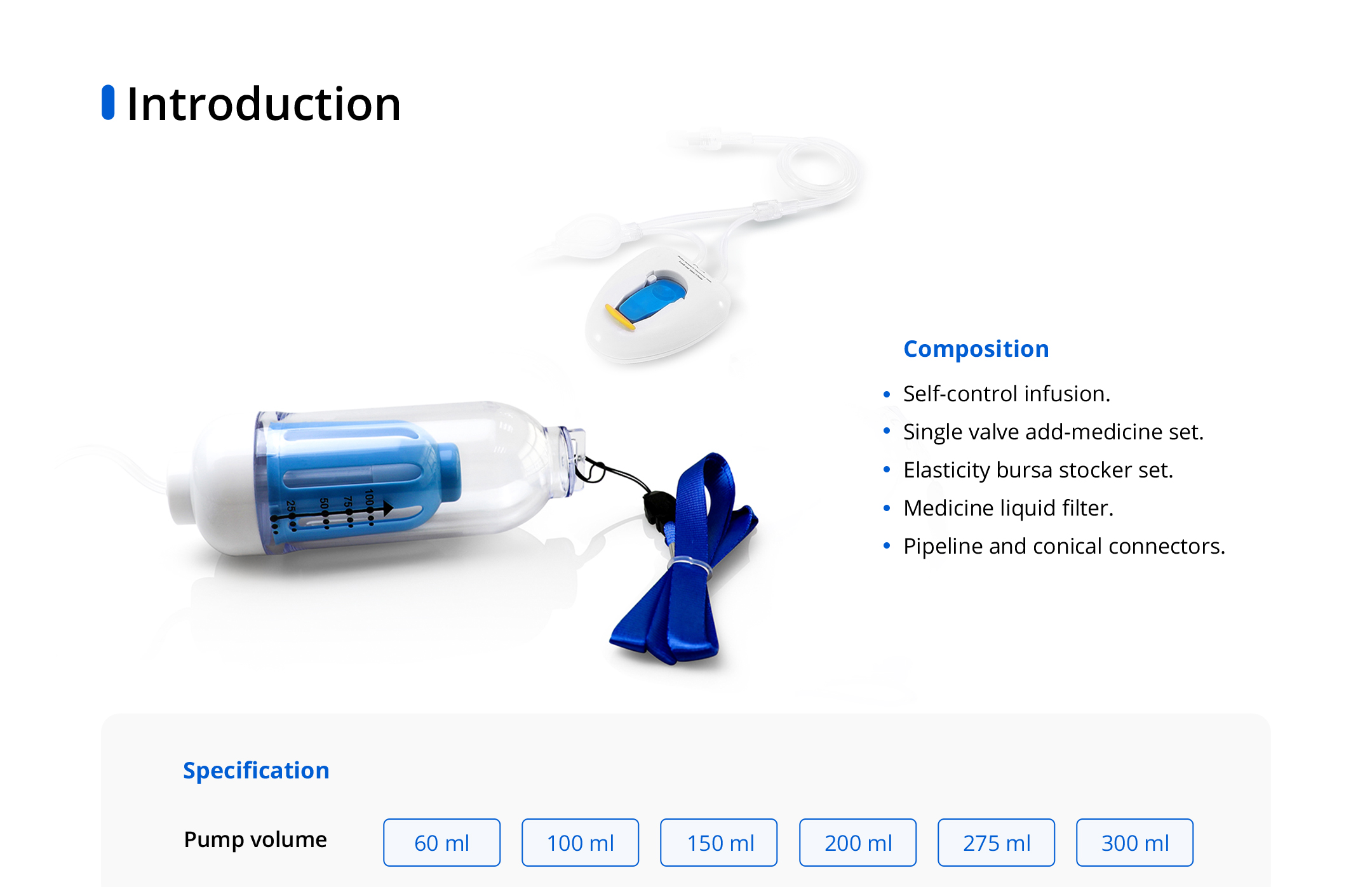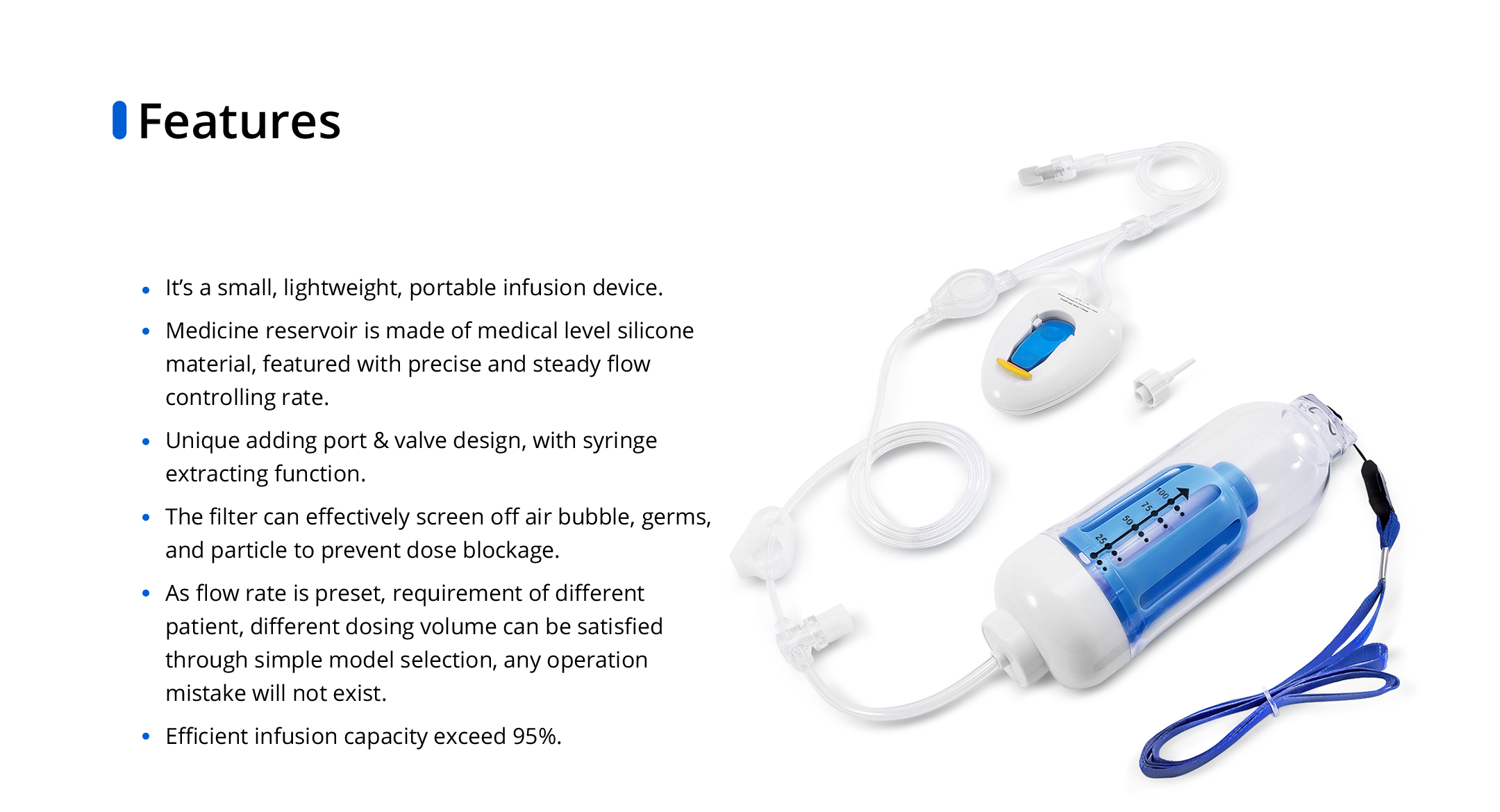 Used for continuous minimal infusion, especially for fixed administration of painkillers and chemotherapy drugs.