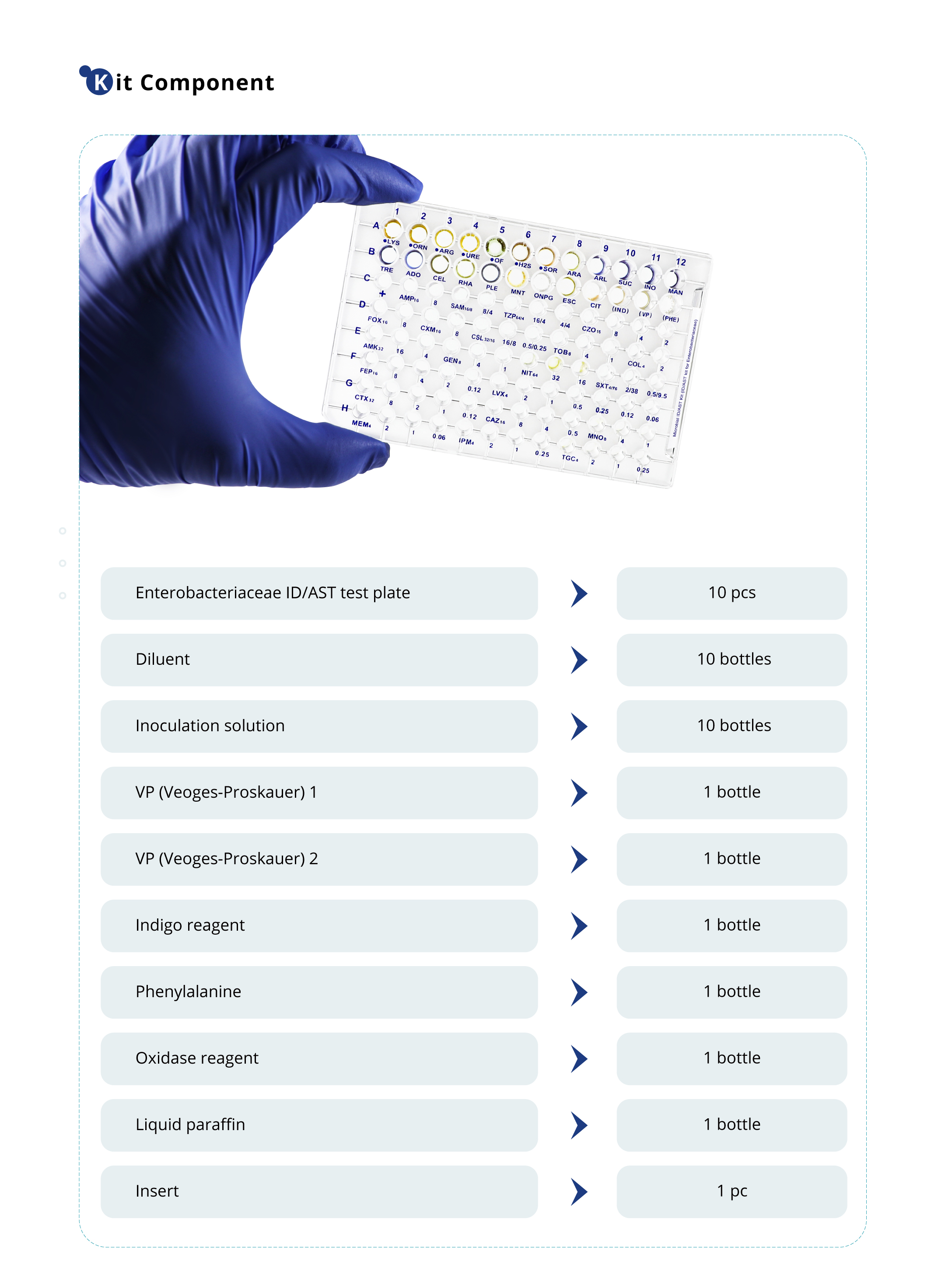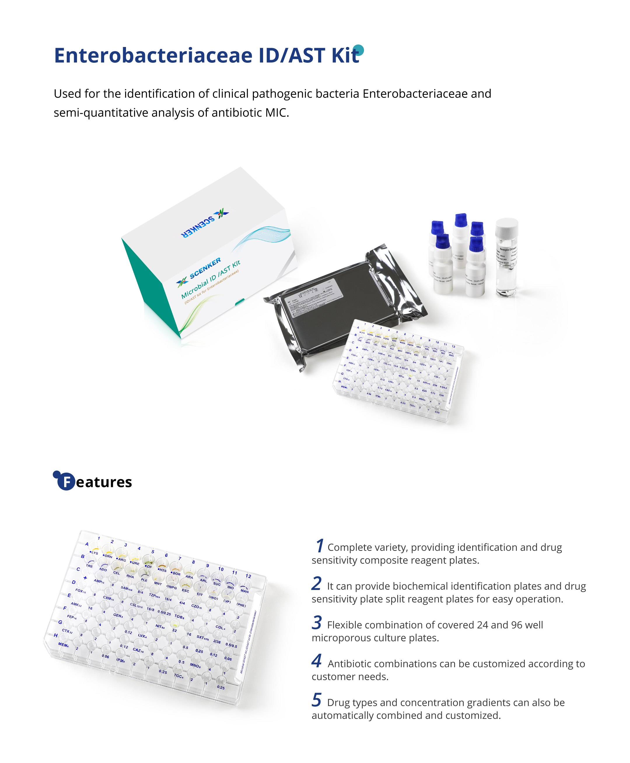 Used for the identification of clinical pathogenic bacteria Enterobacteriaceae and semi-quantitative analysis of antibiotic MIC.