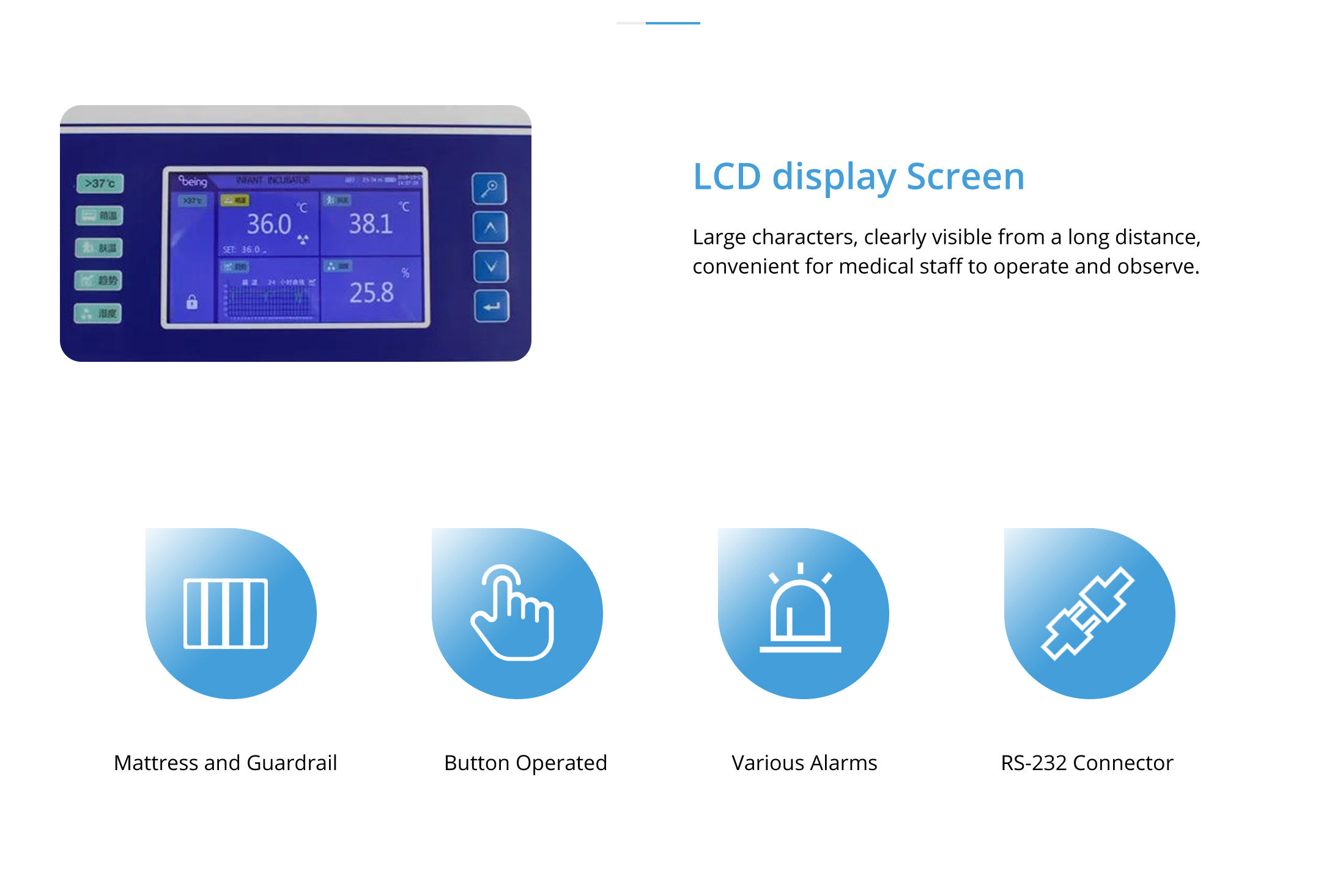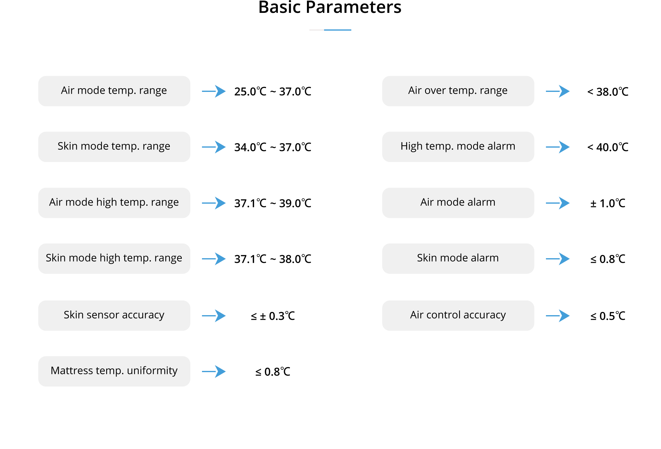 With guardrail & free-step mattress tilting adjustment & skin temp. servo-controlled.