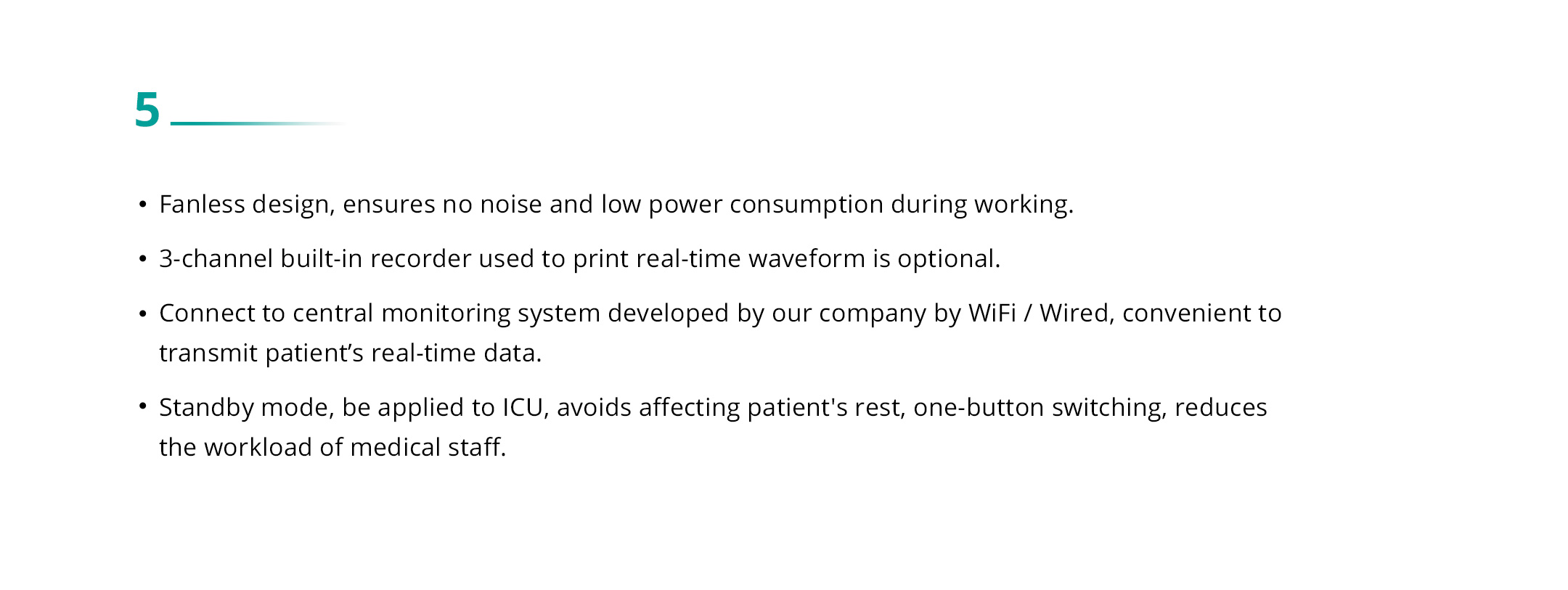 Lead type: 3-lead (I, II, III) / 5-lead (I, II, III, aVR, aVL, aVF, V) / 12-lead (I, II, III, aVR, aVL, aVF, V1, V2, V3, V4, V5, V6) |