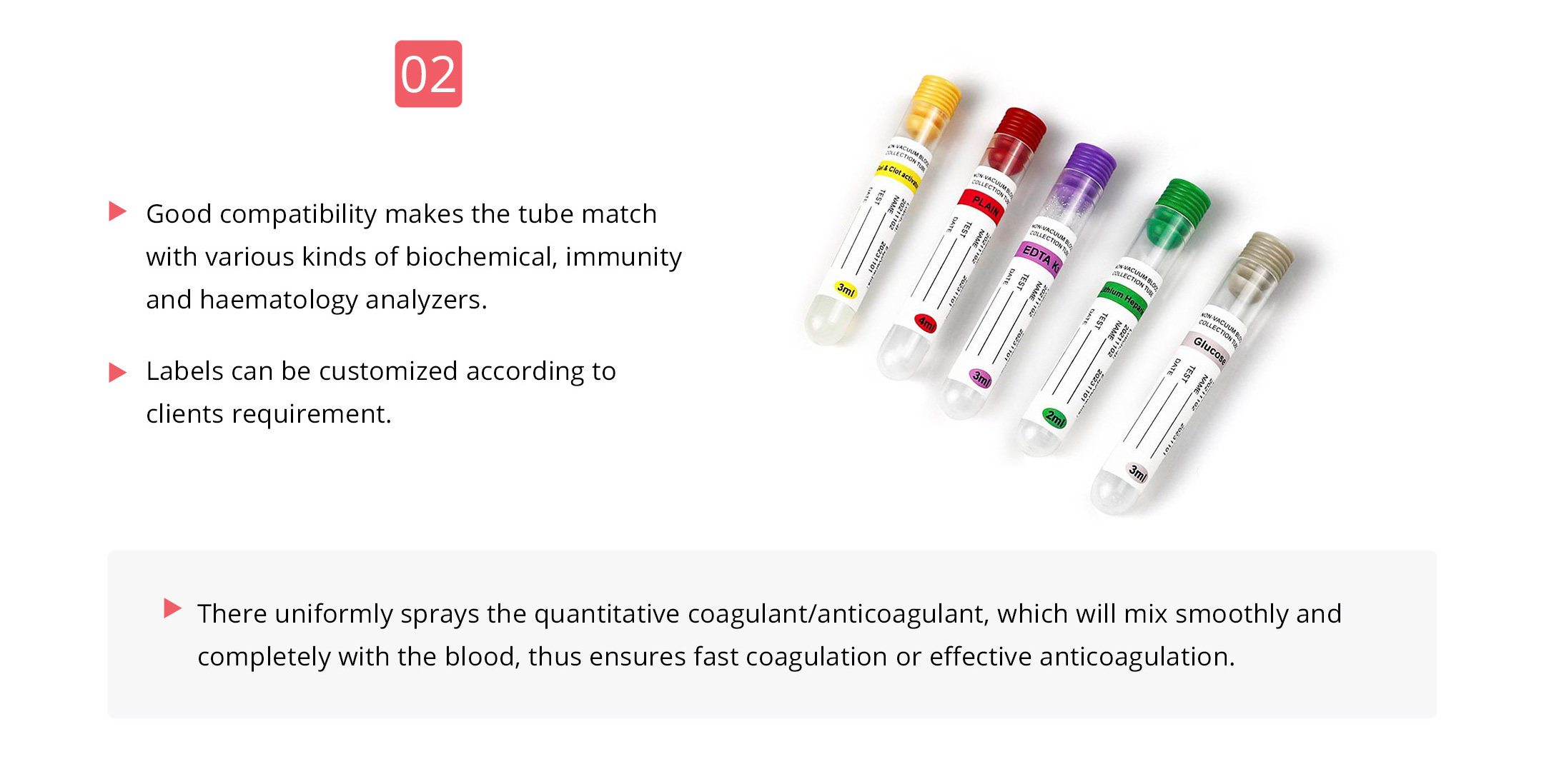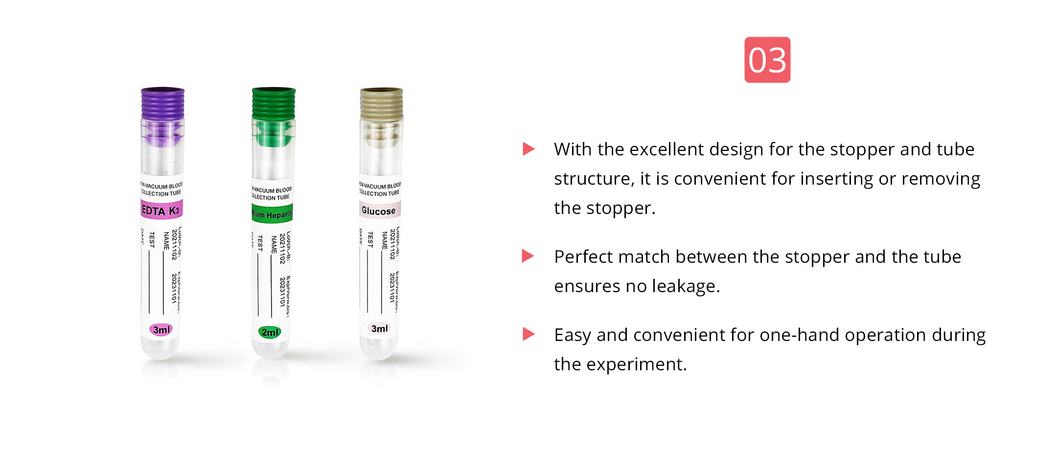 The tubes are made from medical grade PP material. Mainly used for peripheral blood collection, especially suitable for small children and geriatric patient.