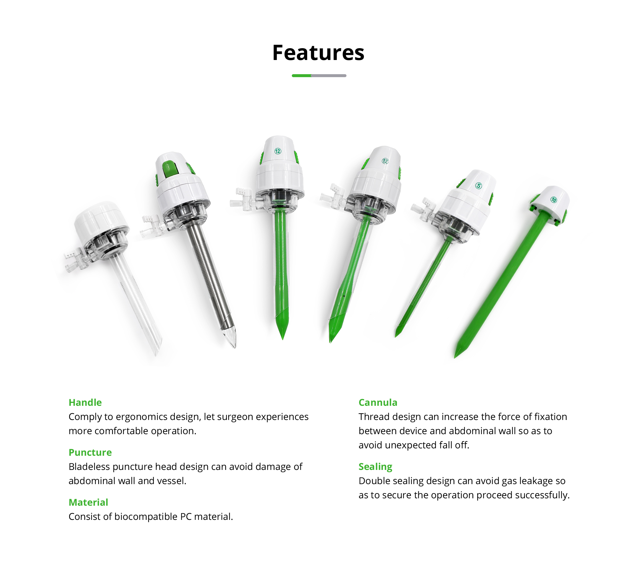 It is suitable for establishing access passage for endoscopes and surgical devices during laparoscopic surgery.