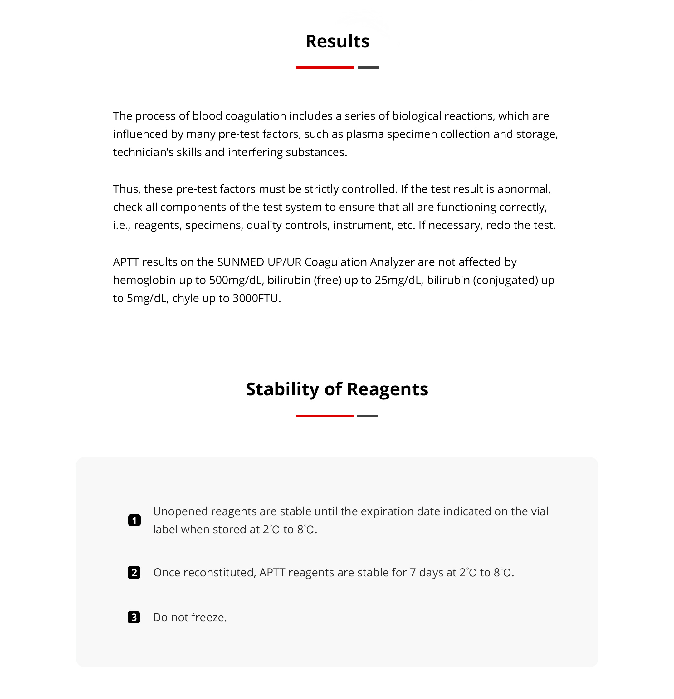 It is used by medical institutions to detect the content of APTT (activated partial thromboplastin time) in human plasma in vitro for auxiliary diagnosis.