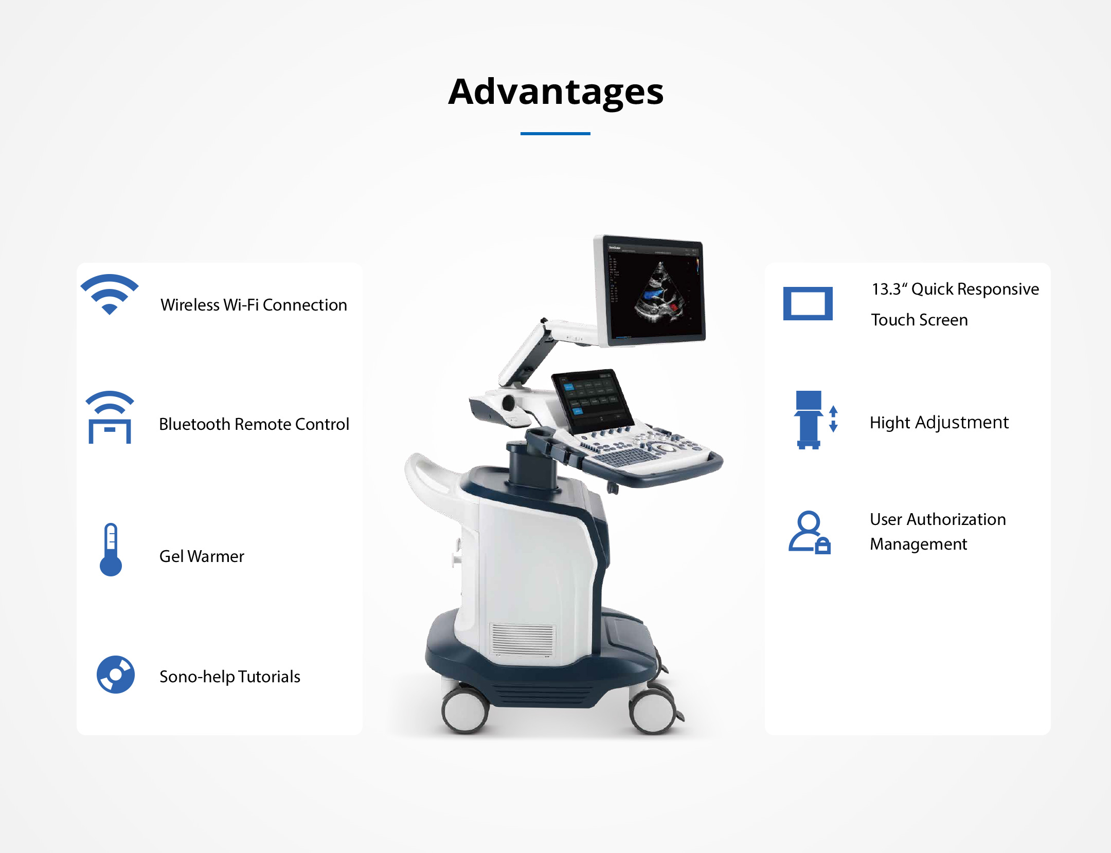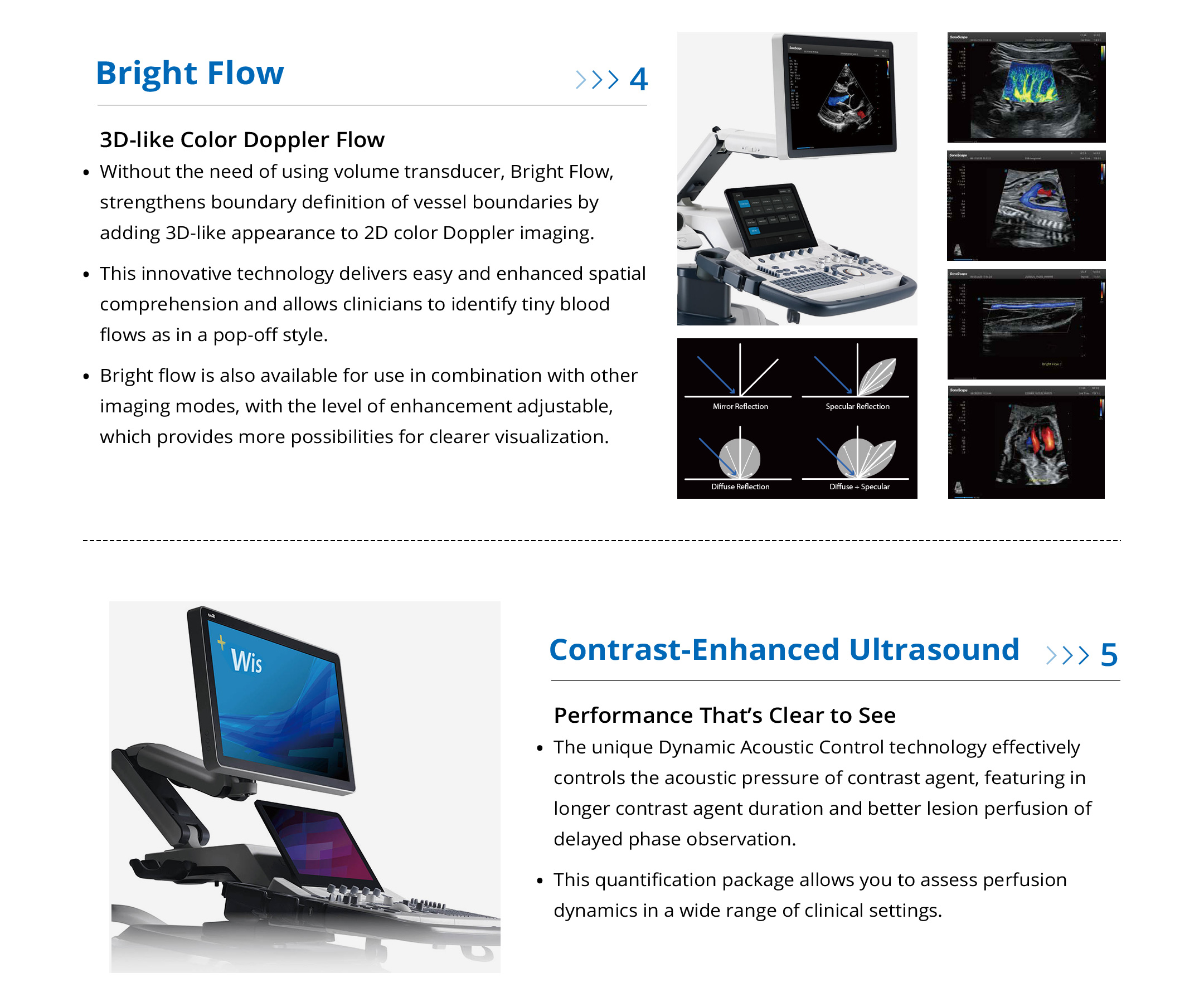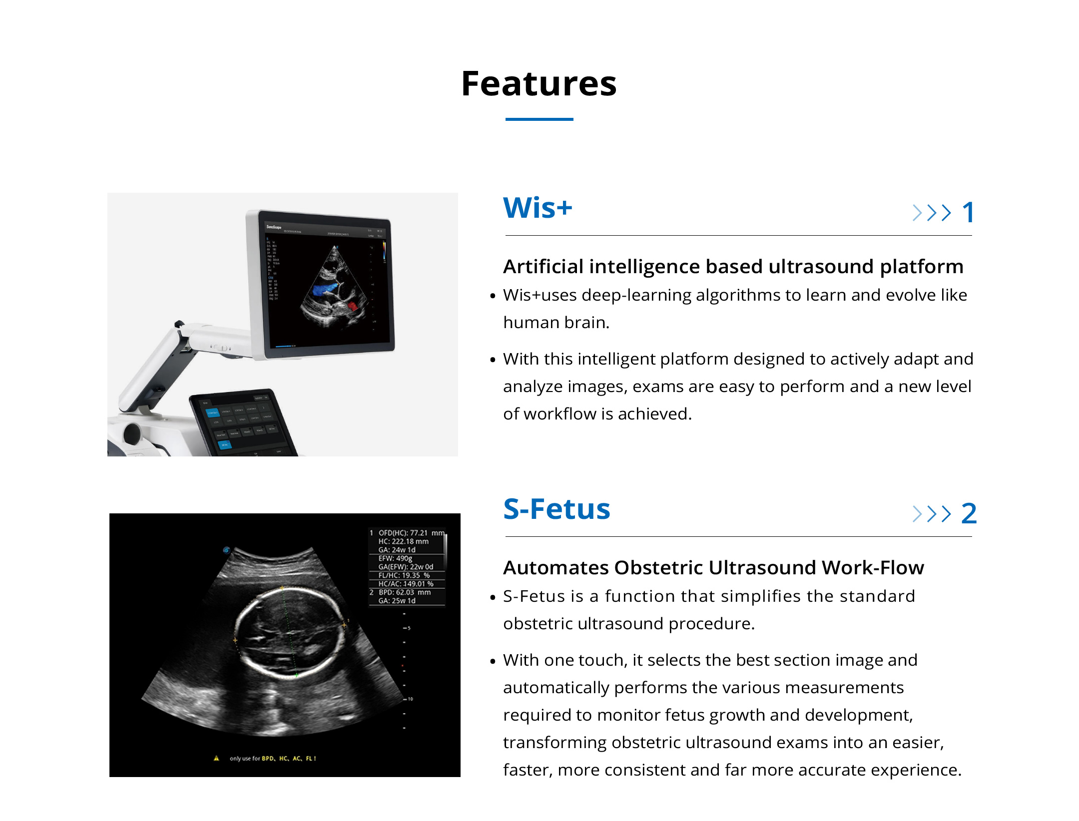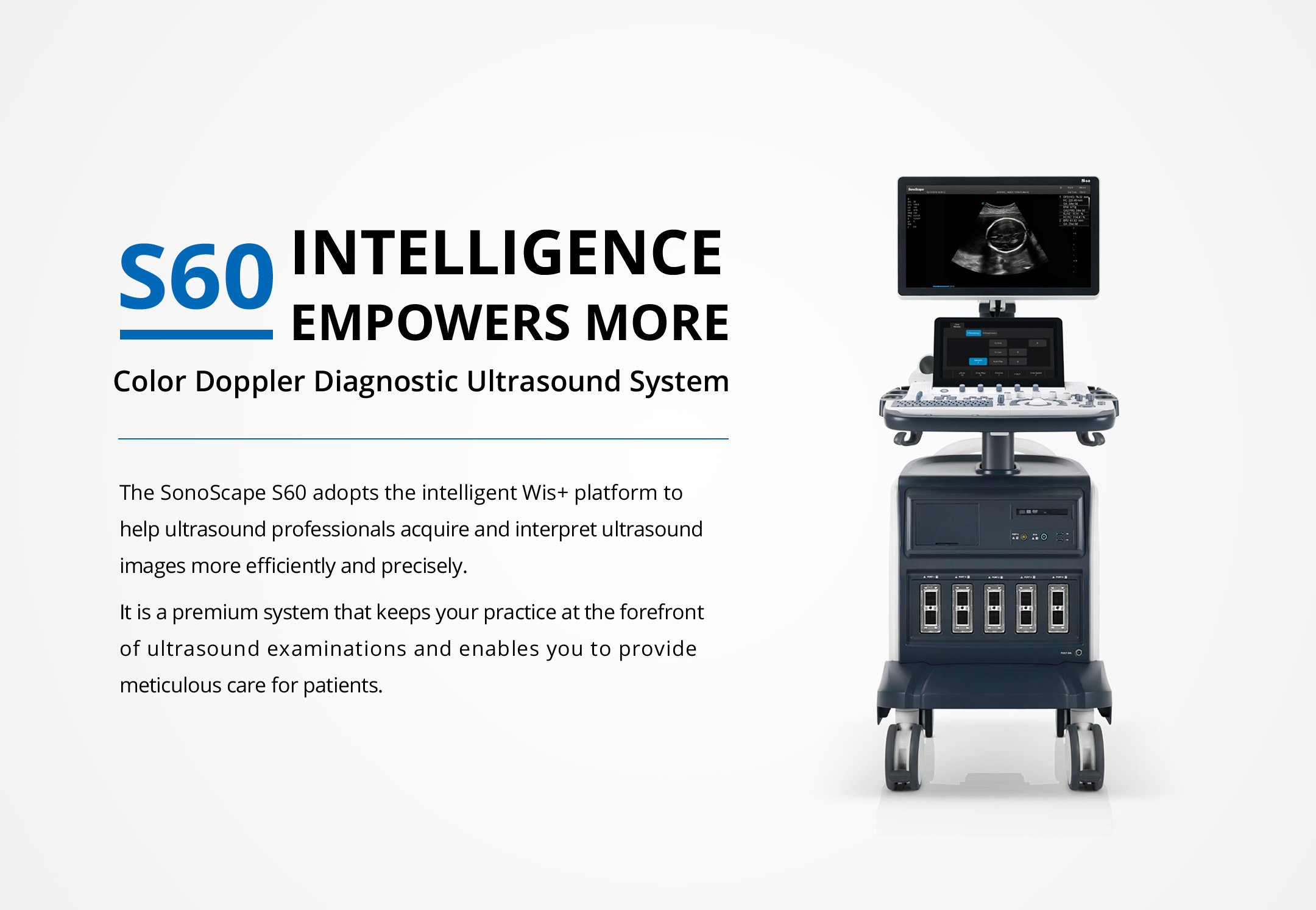 Inspired design. Artificial Intelligence based ultrasound platform. Automates obstetric ultrasound work-flow. Advanced visualization for blood flow dynamics. 3D-like color doppler flow.