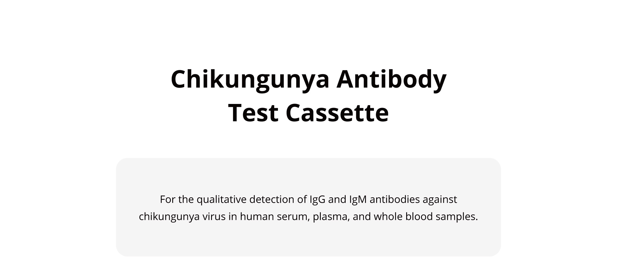 For the qualitative detection of IgG and IgM antibodies against chikungunya virus in human serum, plasma, and whole blood samples.