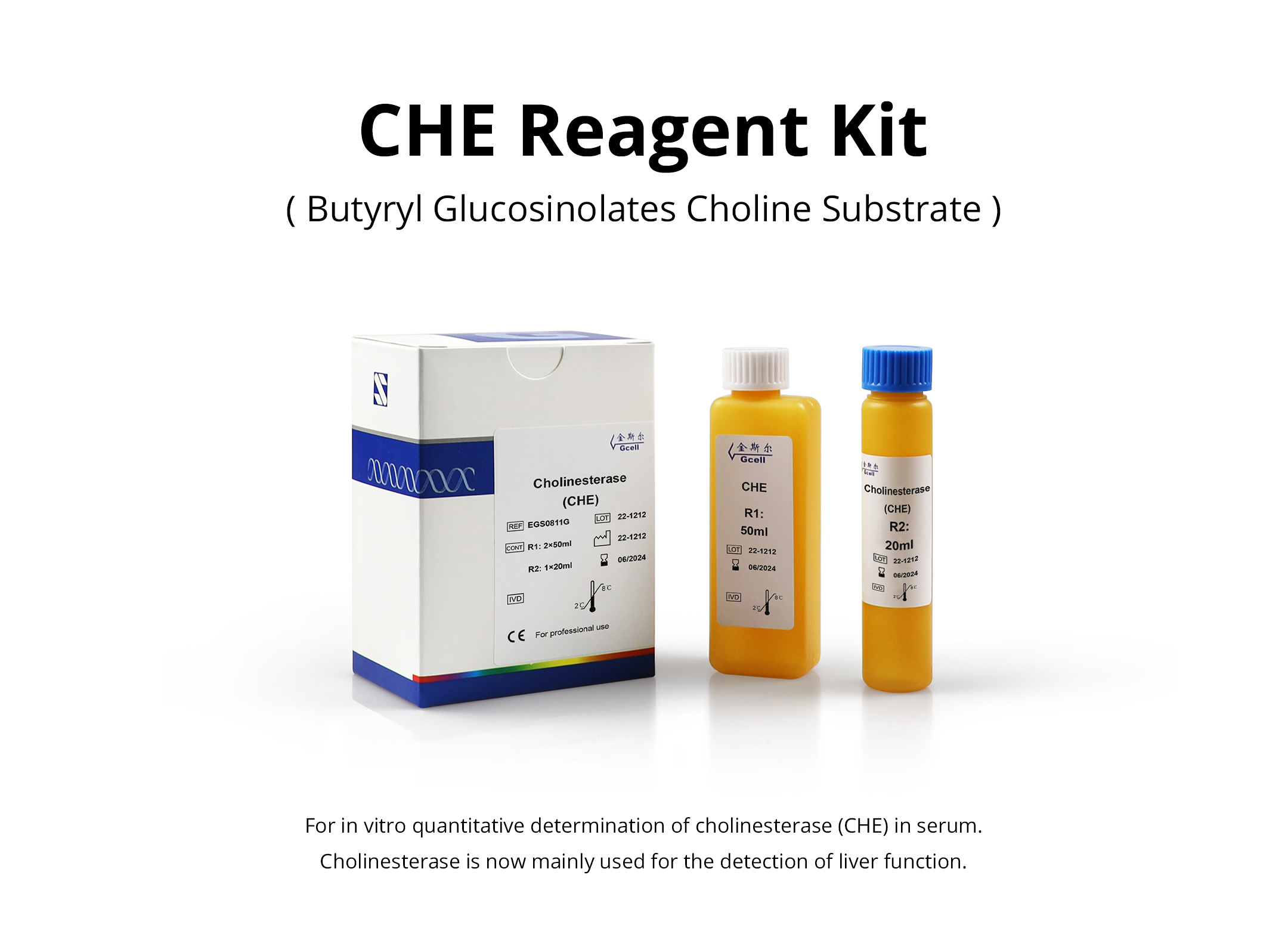 For in vitro quantitative determination of cholinesterase (CHE) in serum. Cholinesterase is now mainly used for the detection of liver function.