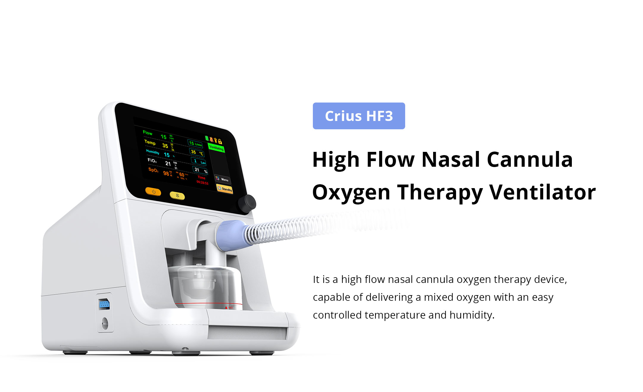 High flow nasal cannula oxygen therapy ventilator (Crius HF3)