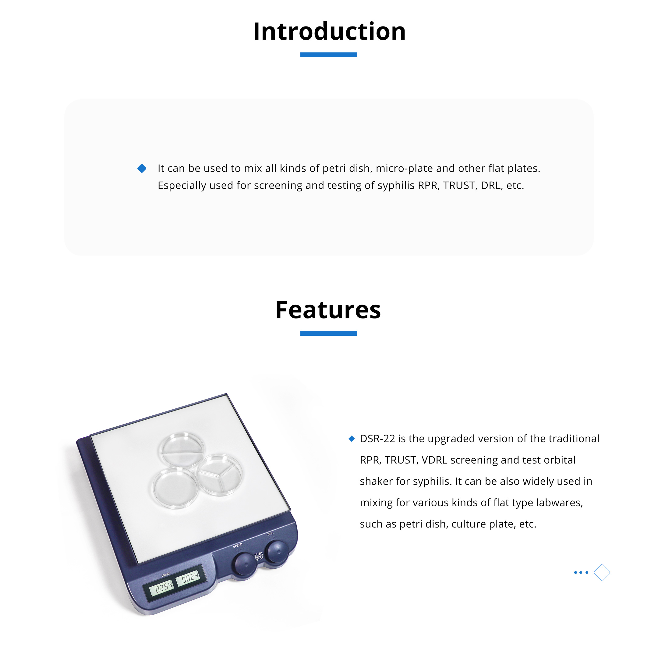 It can be used to mix all kinds of petri dish, micro-plate and other flat plates. Especially used for screening and testing of syphilis RPR, TRUST, DRL, etc.