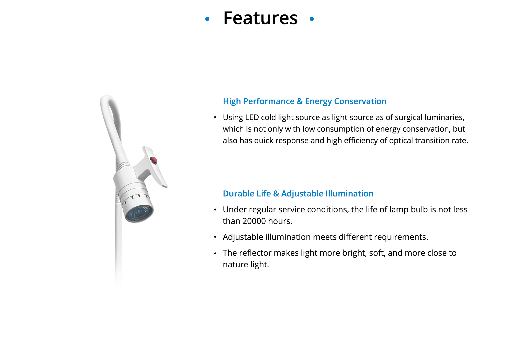 30000 Lux at 0.5 m, 10000 Lux at 1 m |