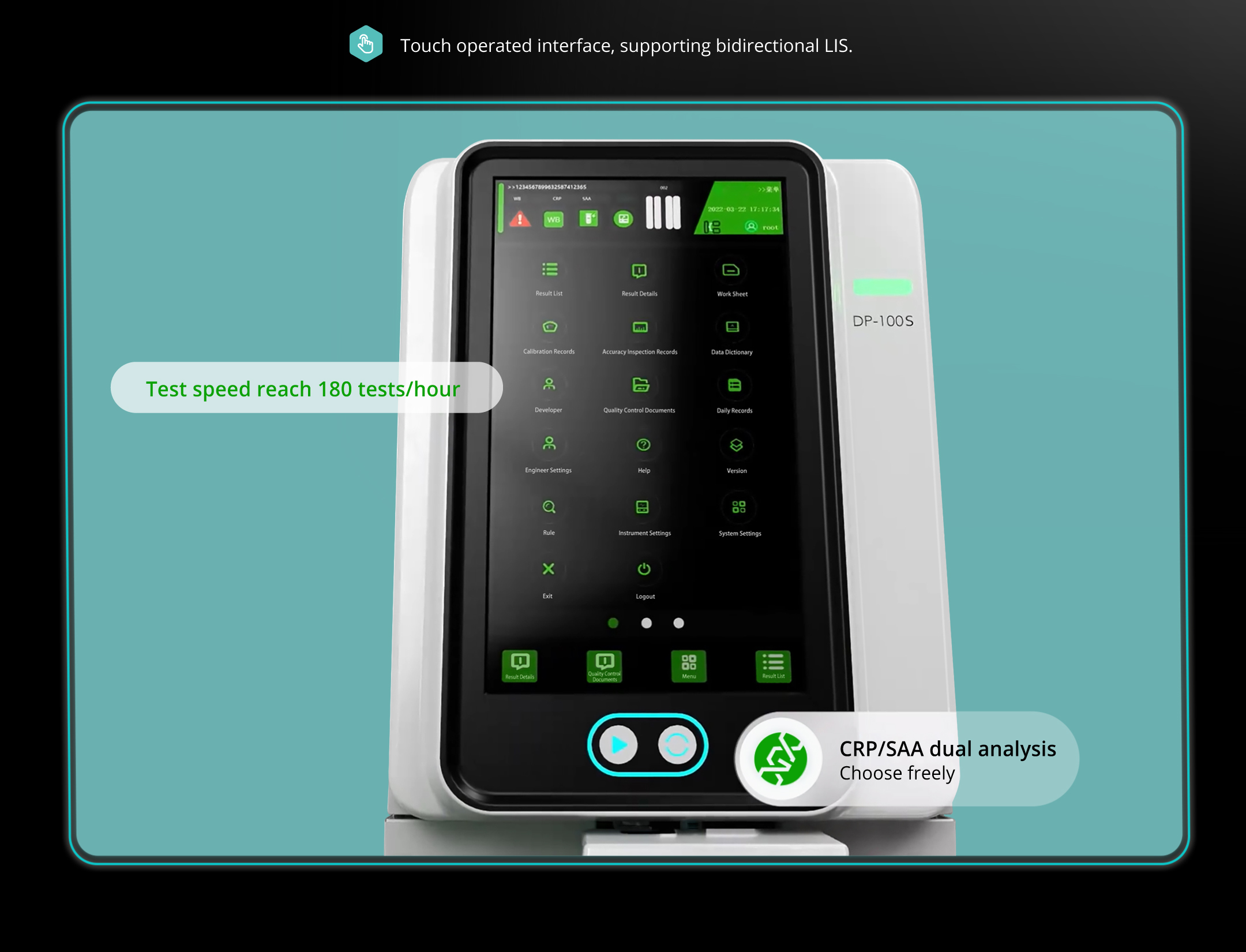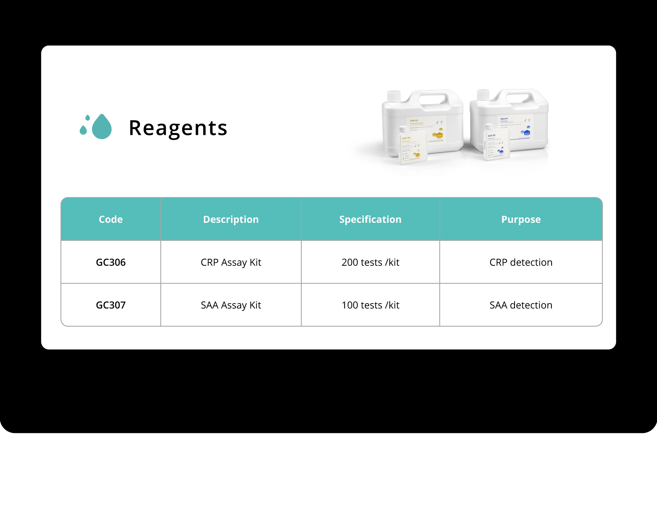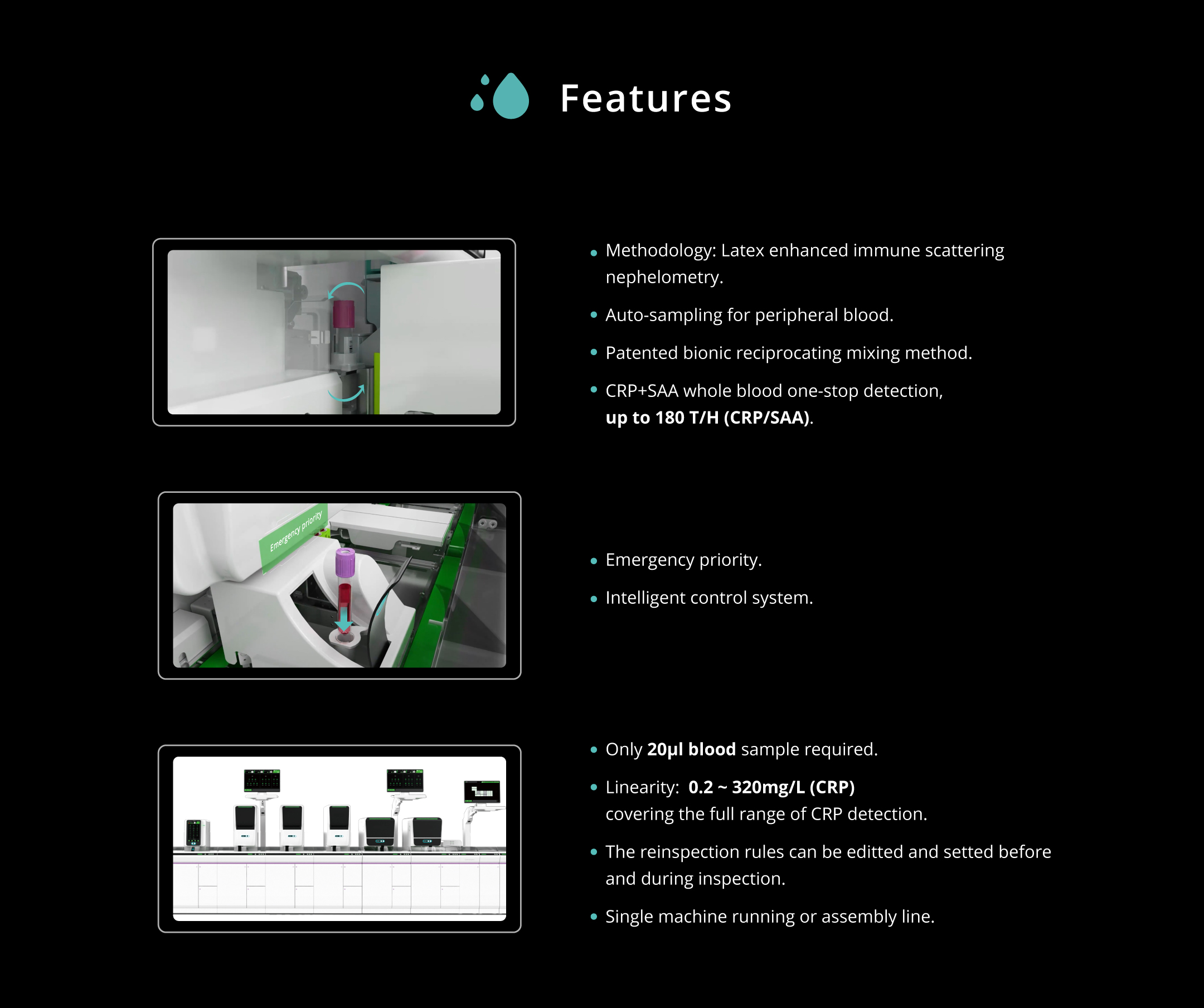 CRP/SAA can be detected individually or dually, with a speed of up to 180 T/H.