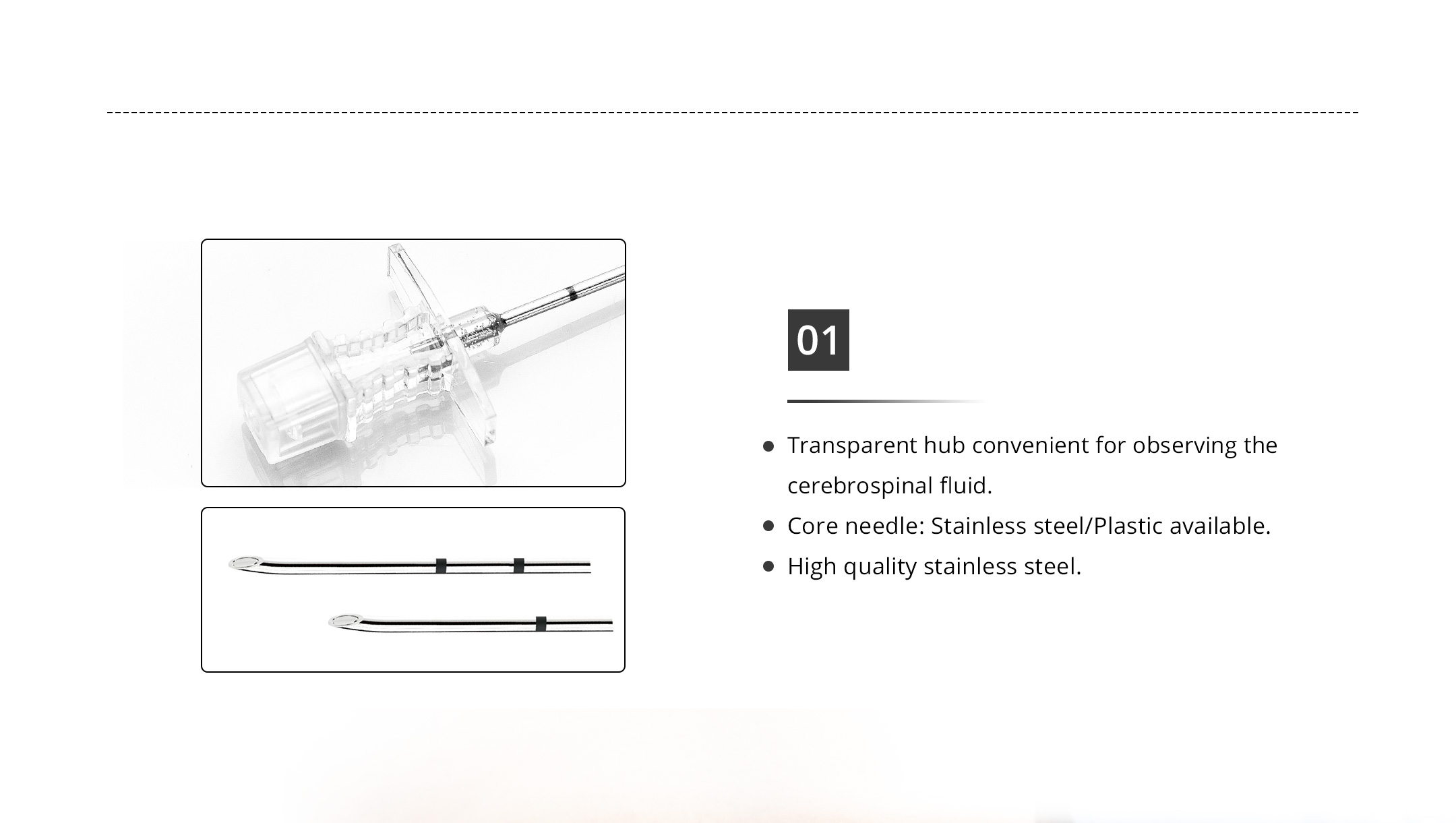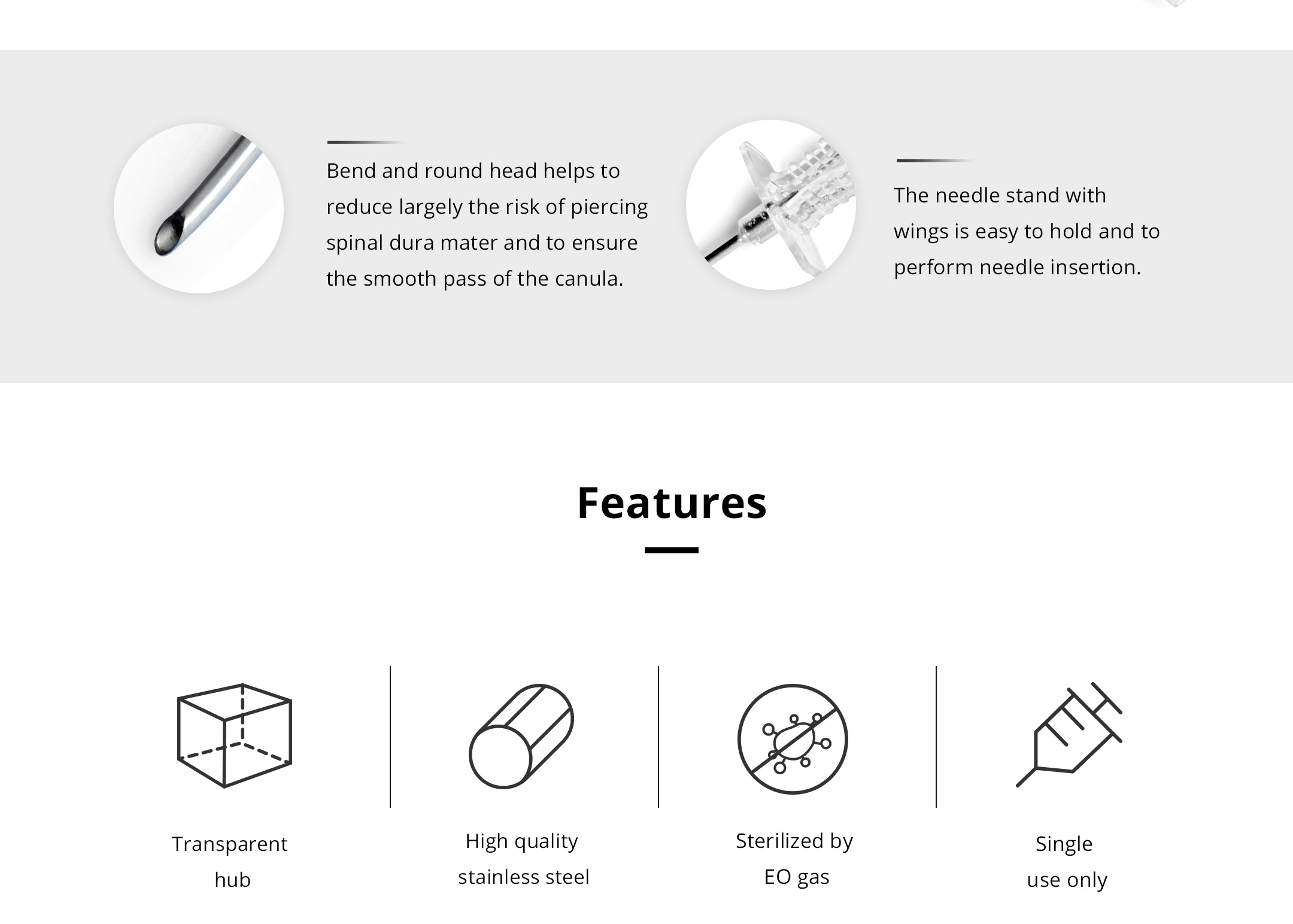 Bend and round head helps to reduce largely the risk of piercing spinal dura mater and to ensure the smooth pass of the canula.