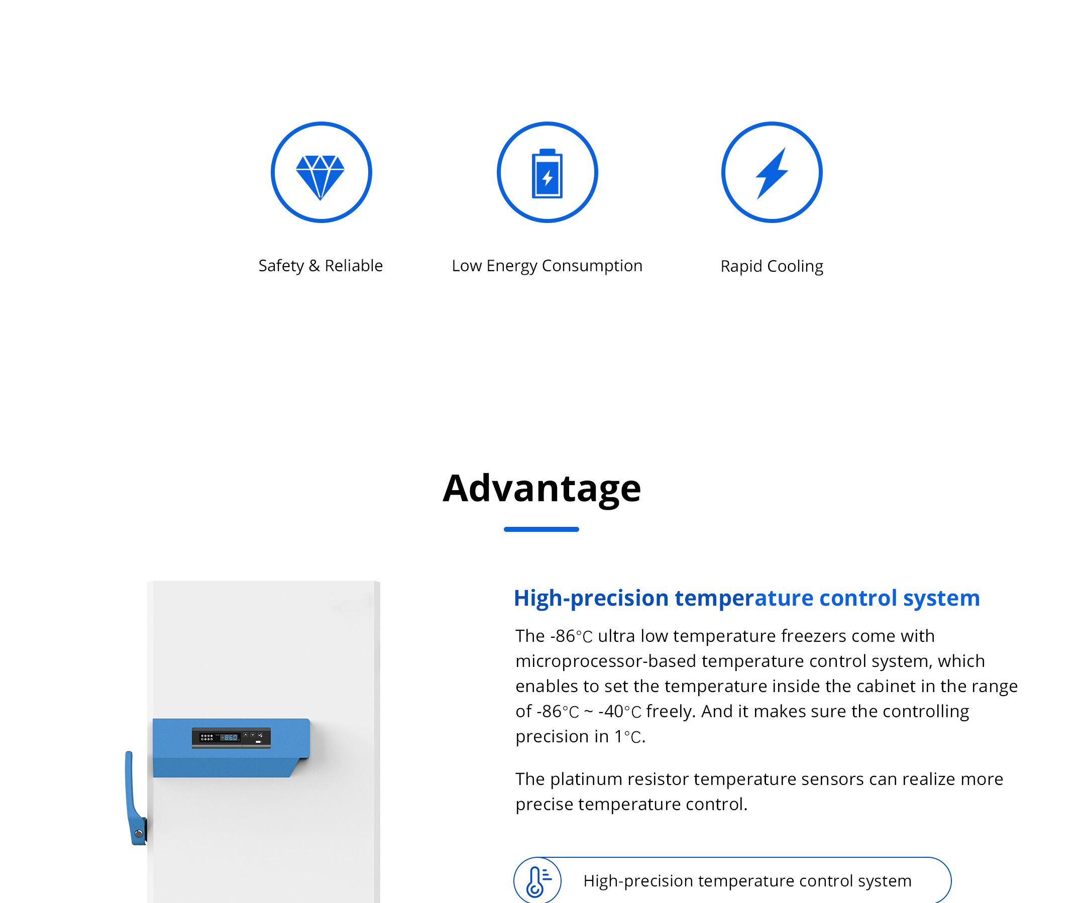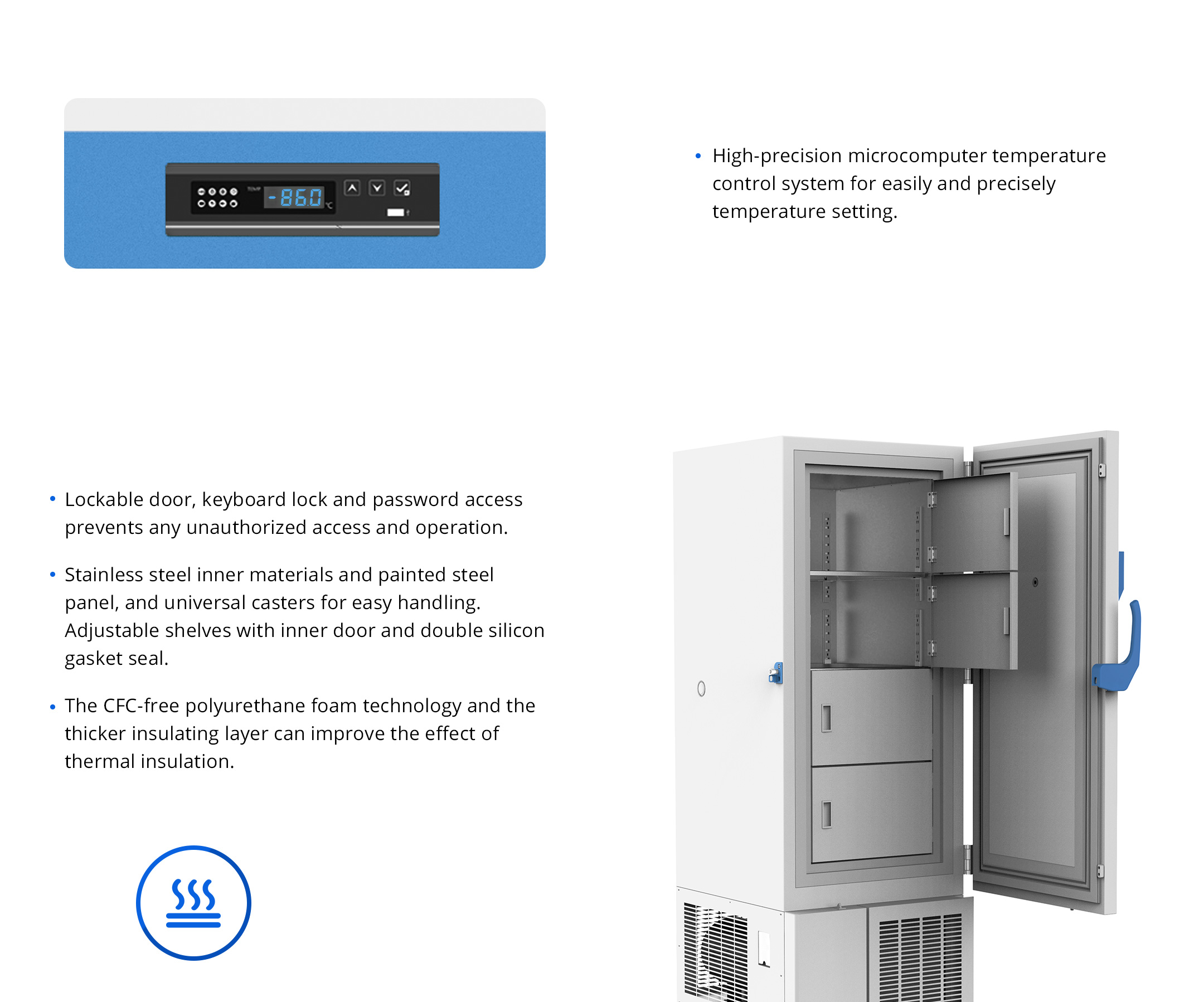 It is equipped with high-precision temperature control, ensuring the temperature uniformity in the cabinet with a range of -40°C to -86°C.