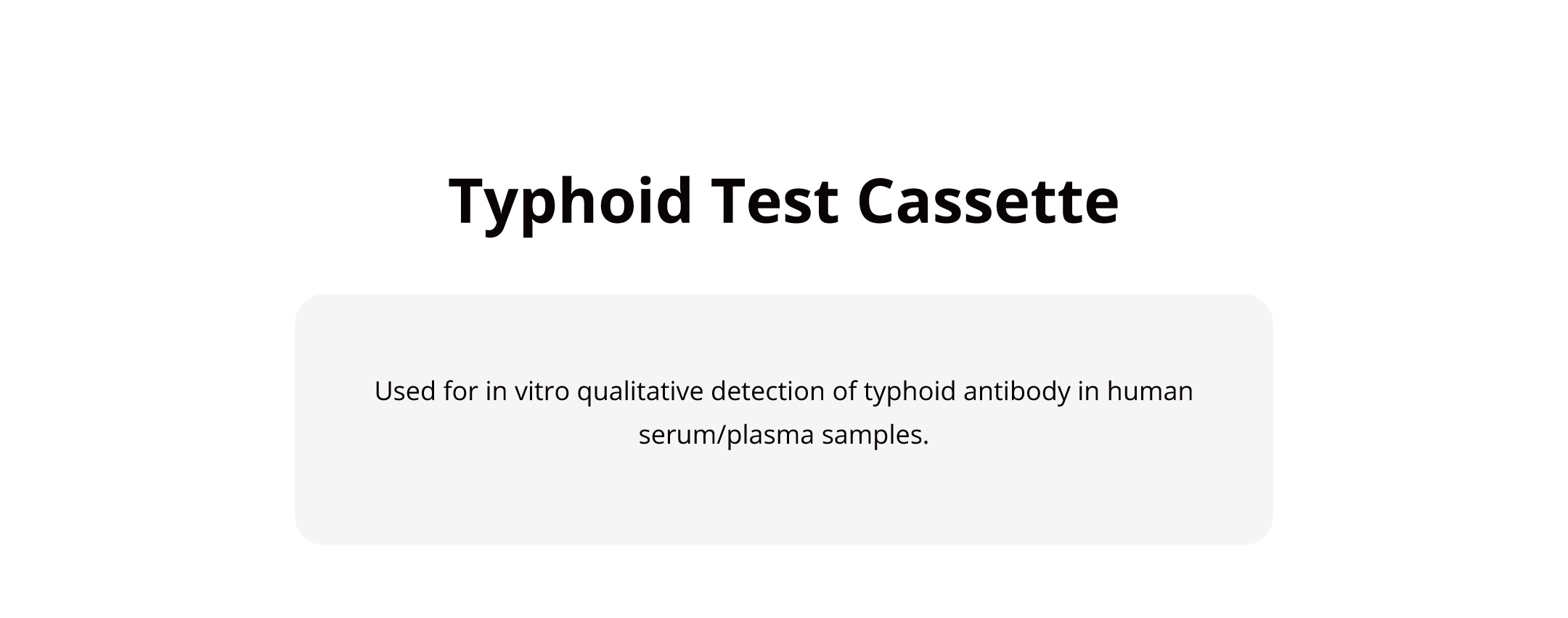 Used for in vitro qualitative detection of typhoid antibody in human serum/plasma samples.