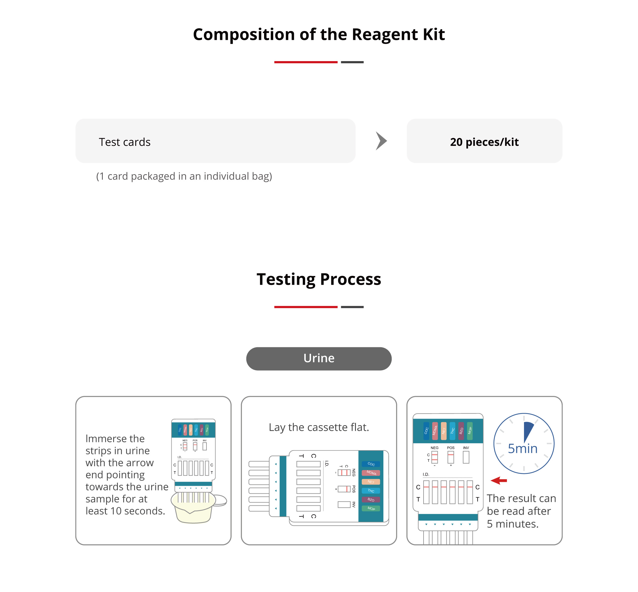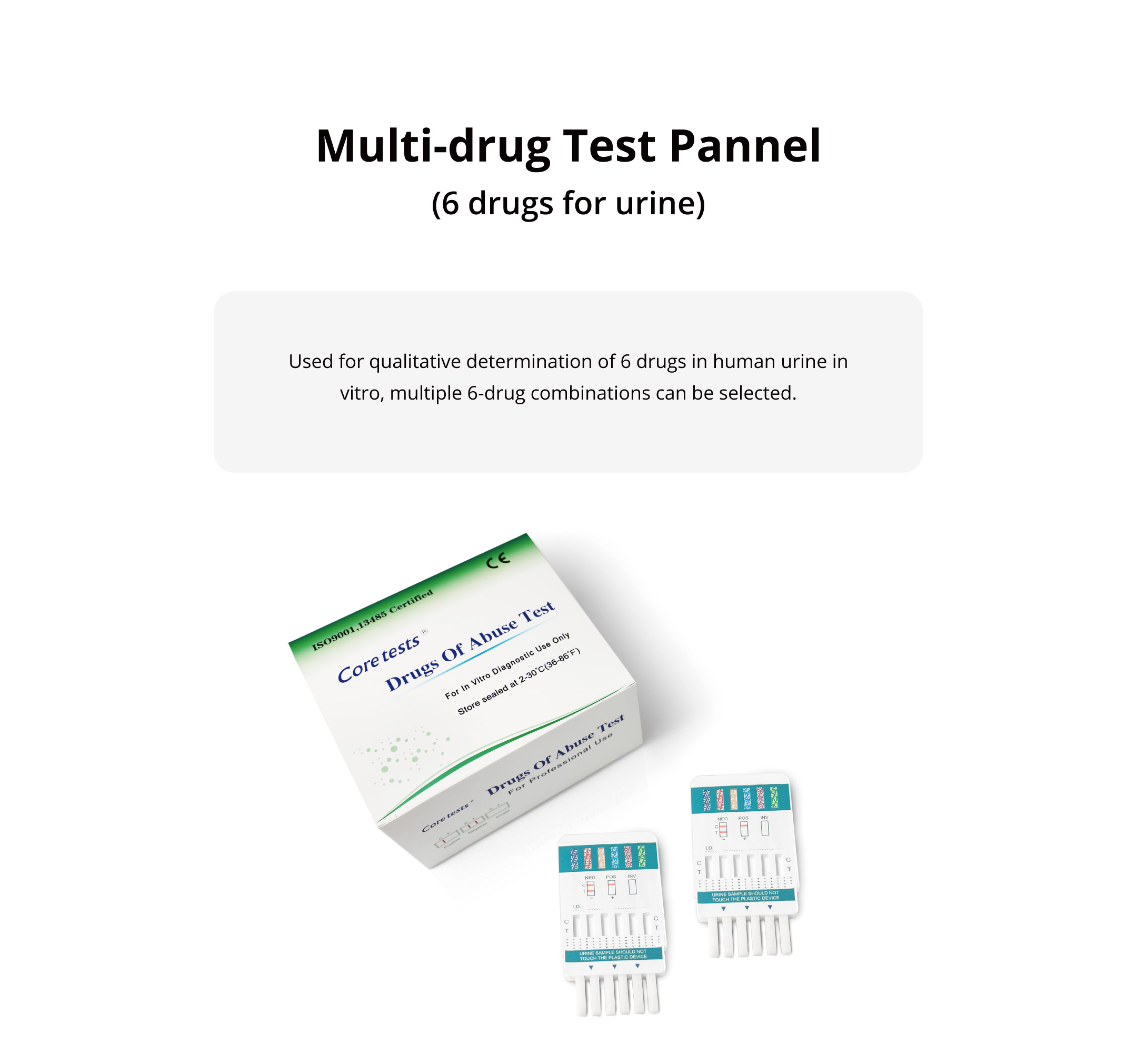 Used for qualitative determination of 6 drugs in human urine in vitro, multiple 6-drug combinations can be selected.