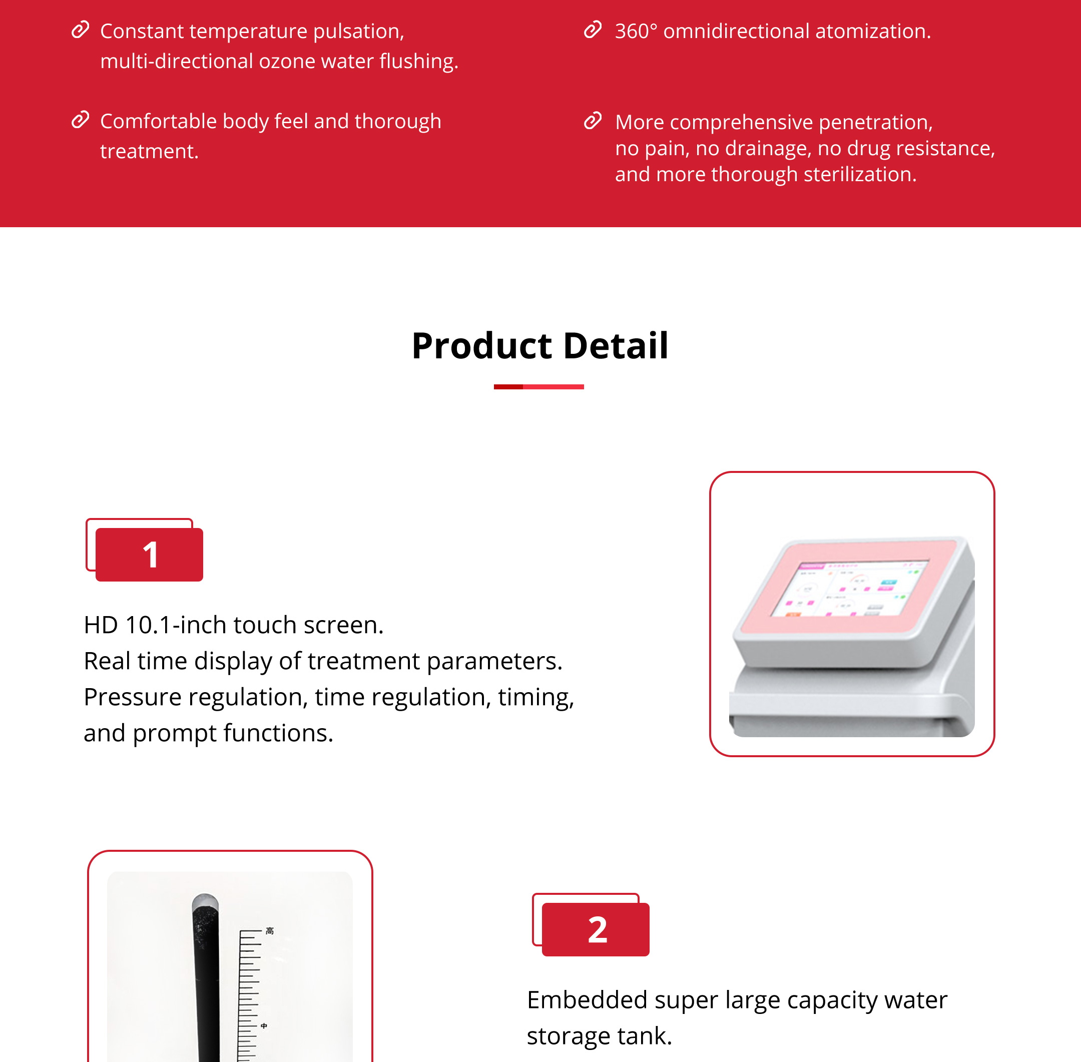 High definition touch screen, three treatment methods, integrated embedded atomization device, constant temperature pulsation flushing.