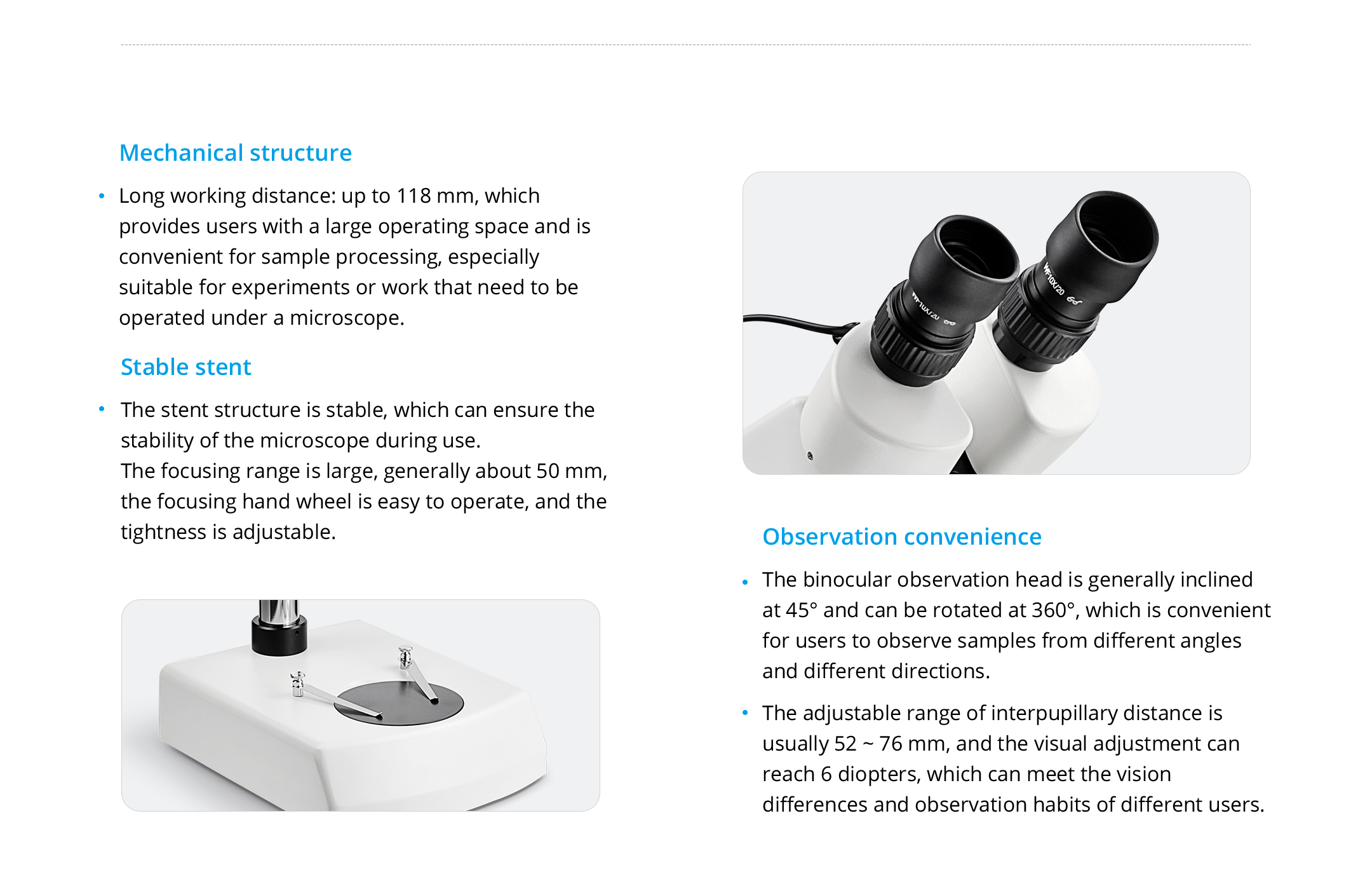 Coarse & fine focusing system is using in the up and down mechanism, lifting range 50 mm |