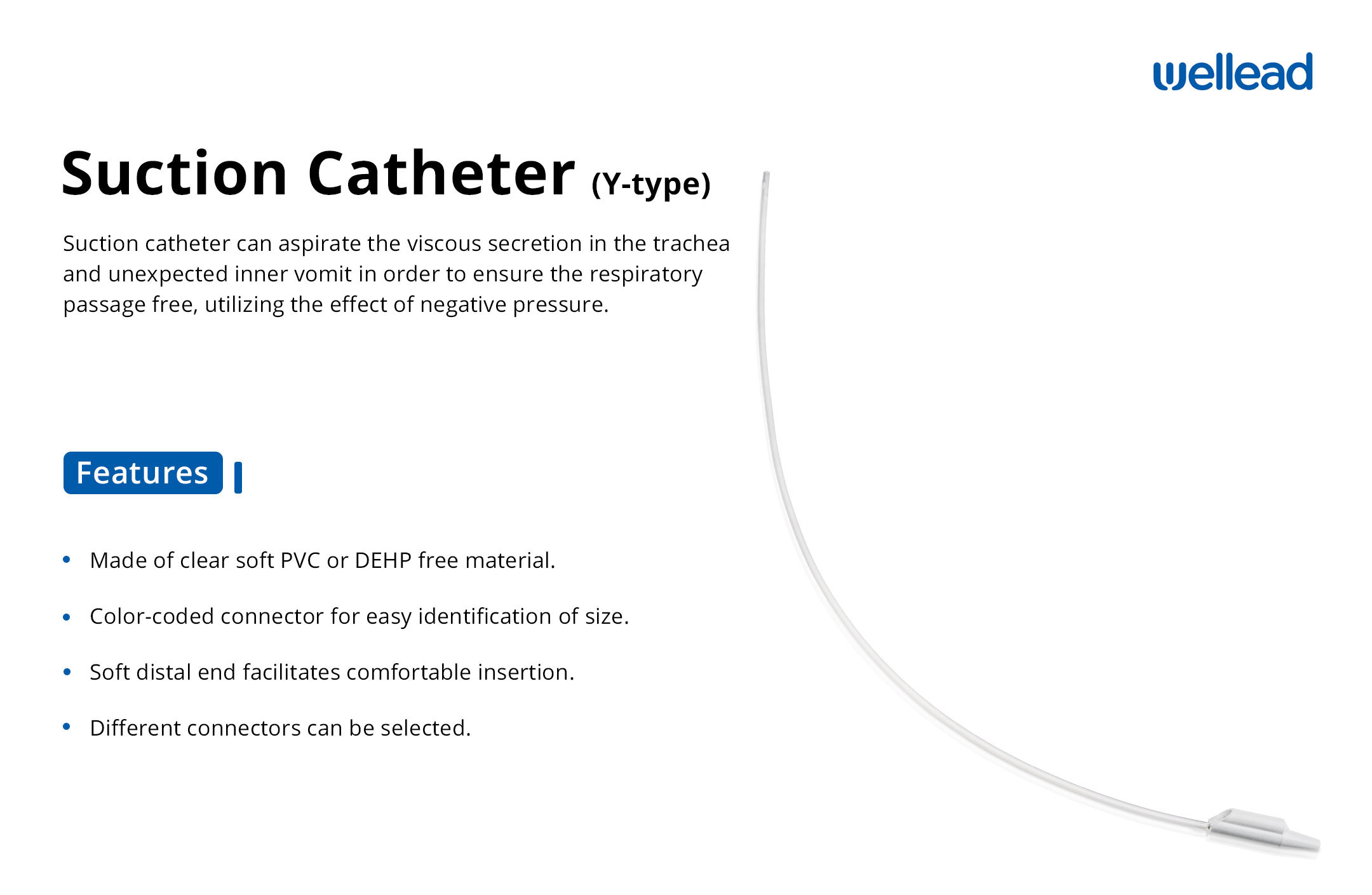 Suction catheter can aspirate the viscous secretion in the trachea and unexpected inner vomit in order to ensure the respiratory passage free, utilizing the effect of negative pressure.