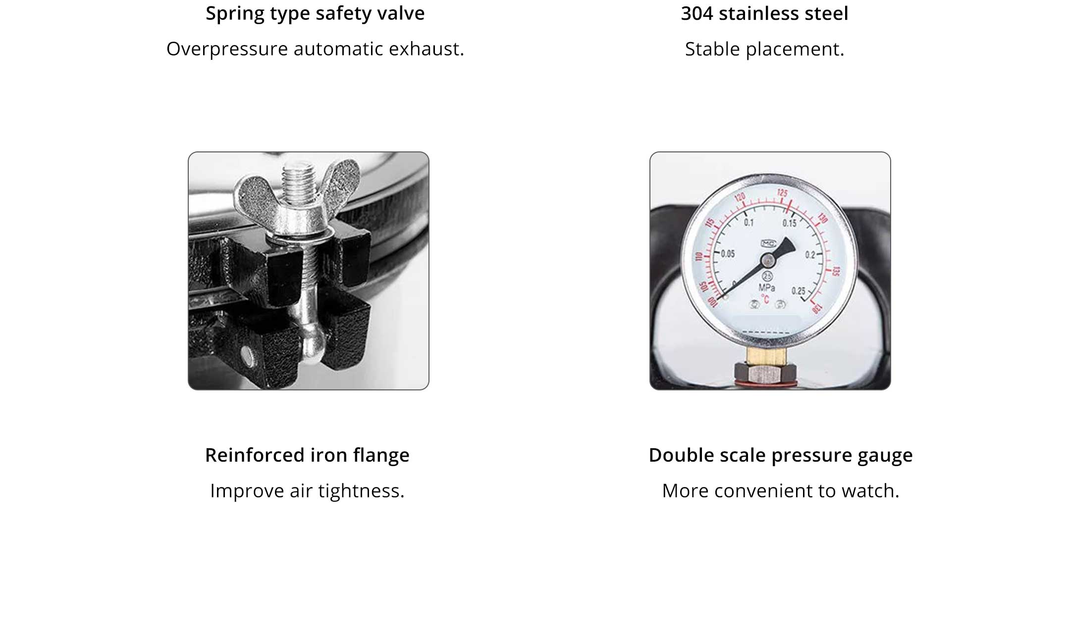 All the machines are made of SUS 304 stainless steel. Double safety valves ensure that the machine is safer and more protected.