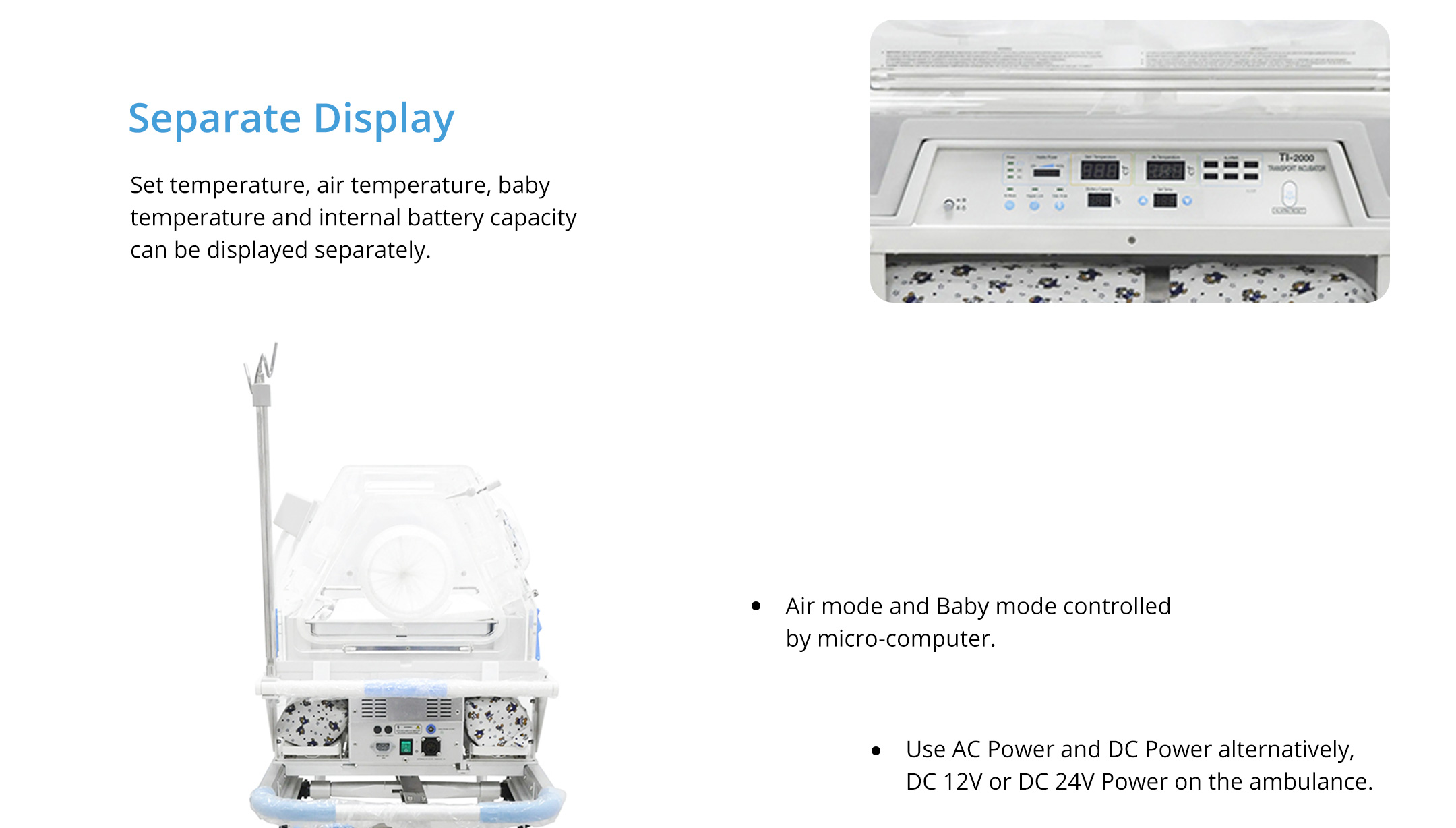 Use AC Power and DC Power alternatively, DC 12V or DC 24V Power on the ambulance