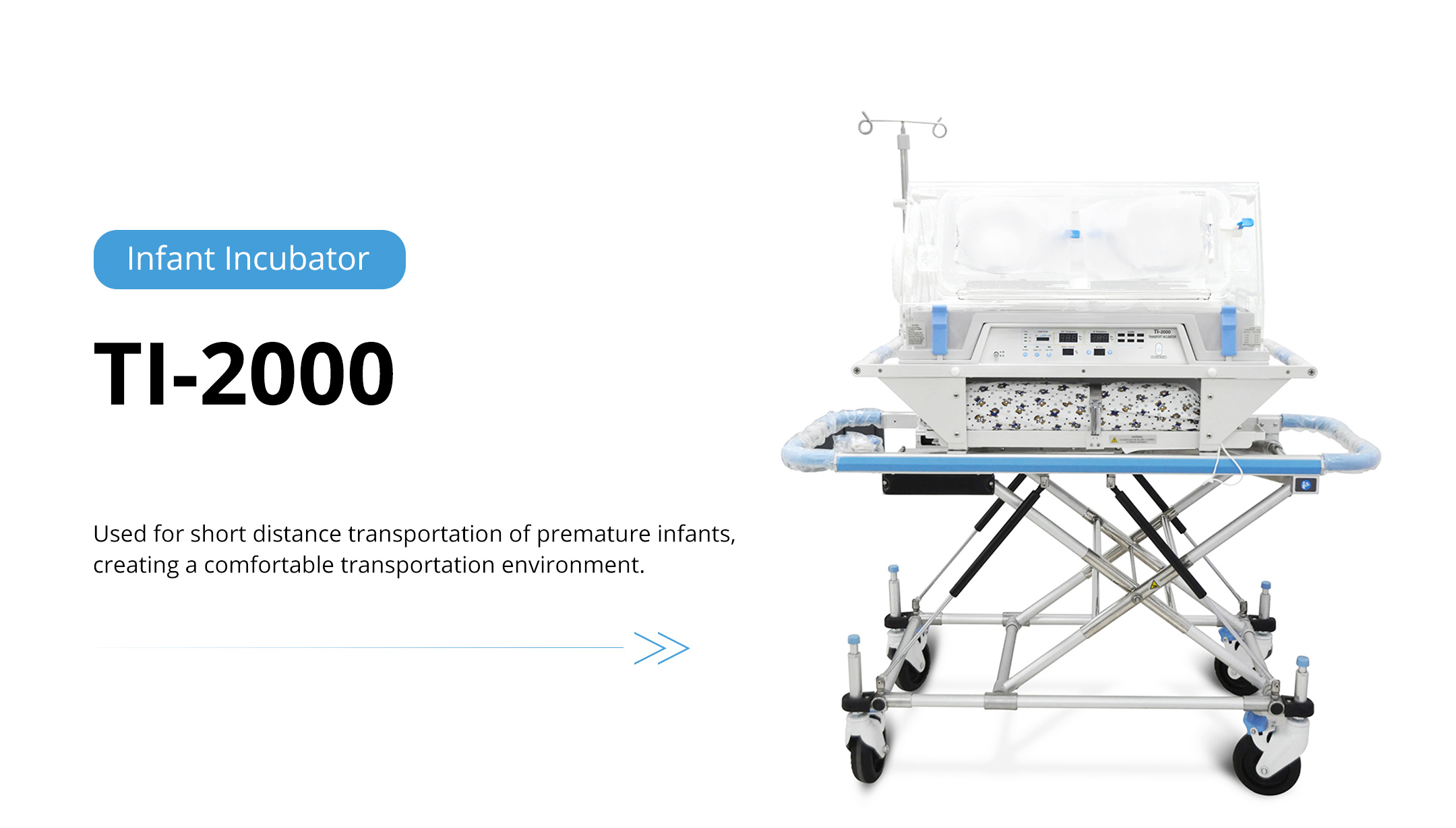 Used for short distance transportation of premature infants, creating a comfortable transportation environment.