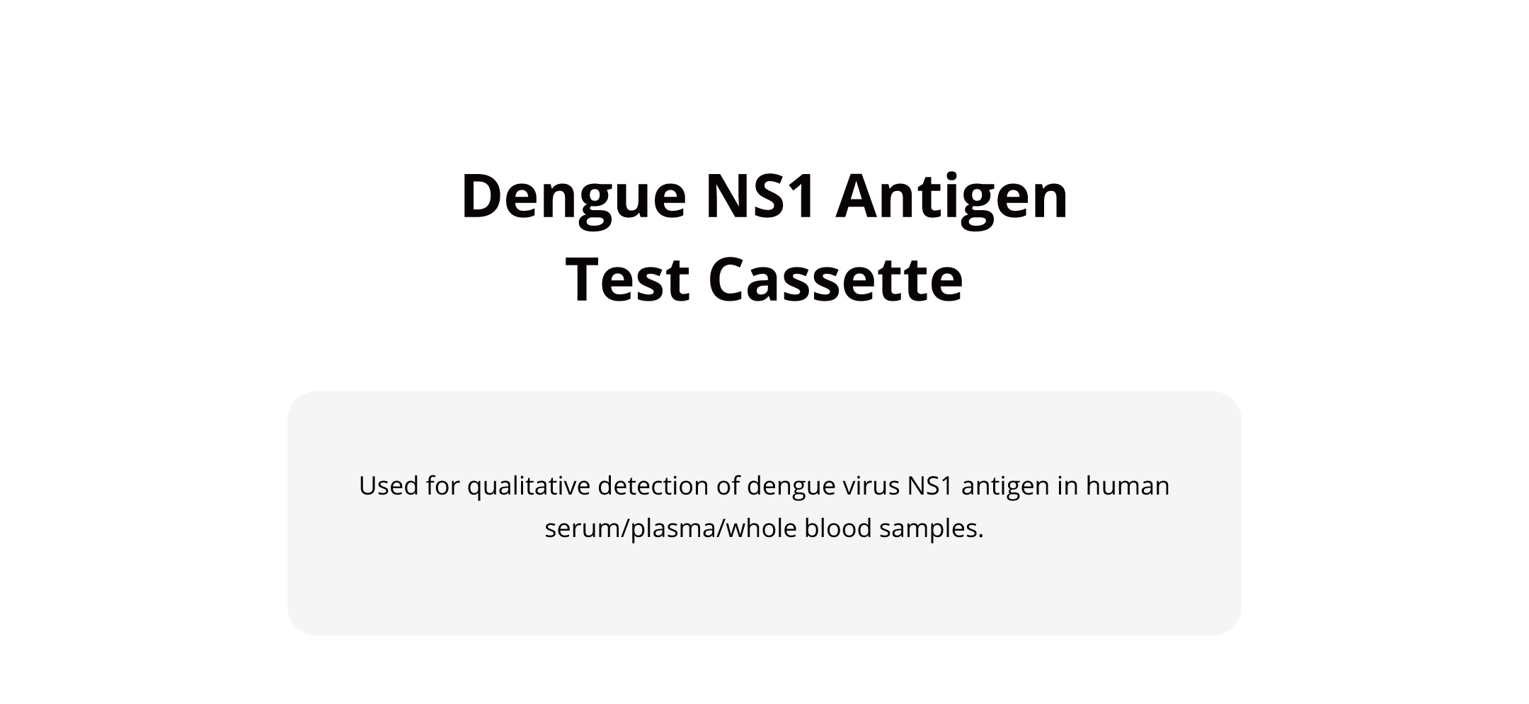 Used for qualitative detection of dengue virus NS1 antigen in human serum/plasma/whole blood samples.