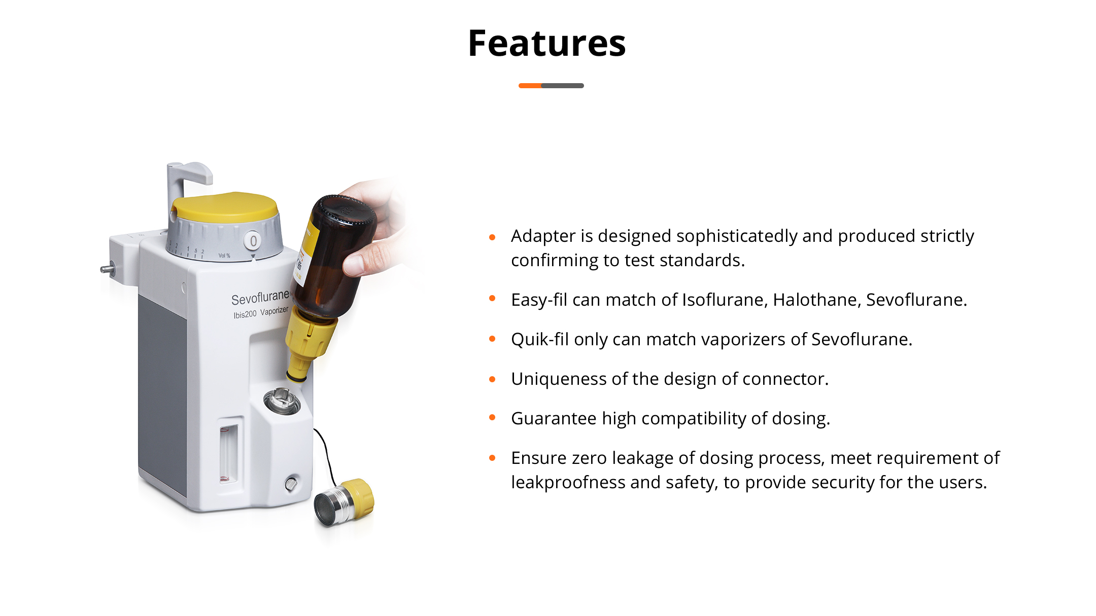 Can match of different anesthesia agent, unique design of connector ensures the zero leakage of dosing process.