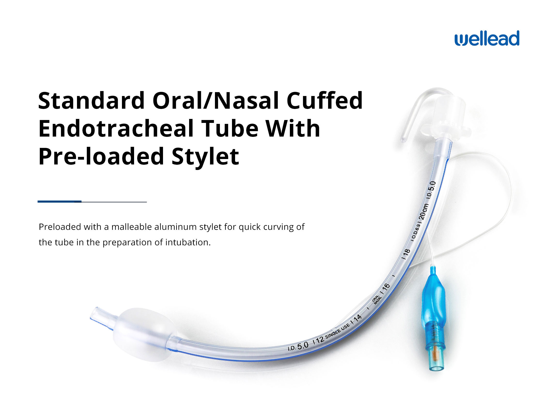 Preloaded with a malleable aluminum stylet for quick curving of the tube in the preparation of intubation.