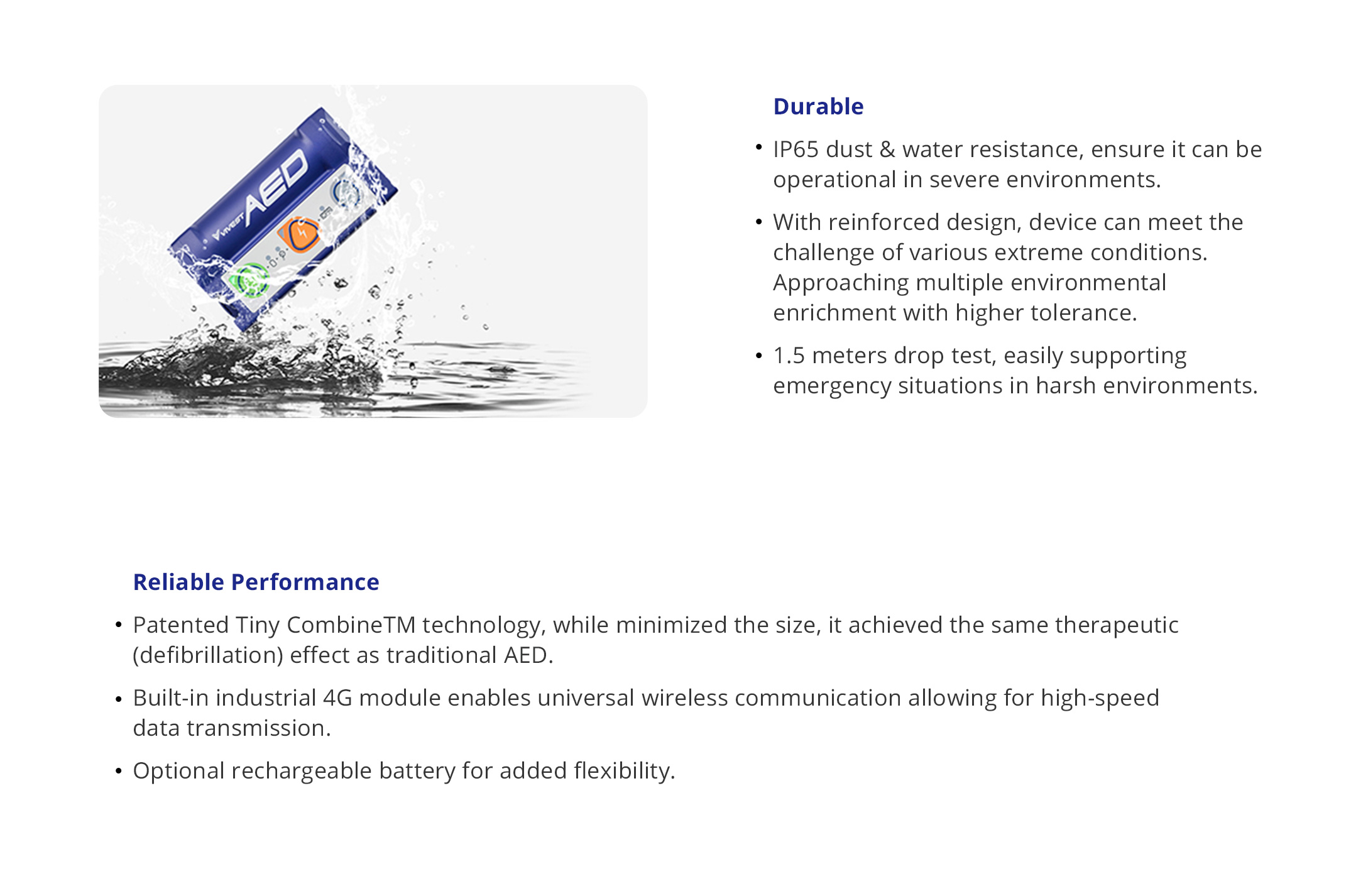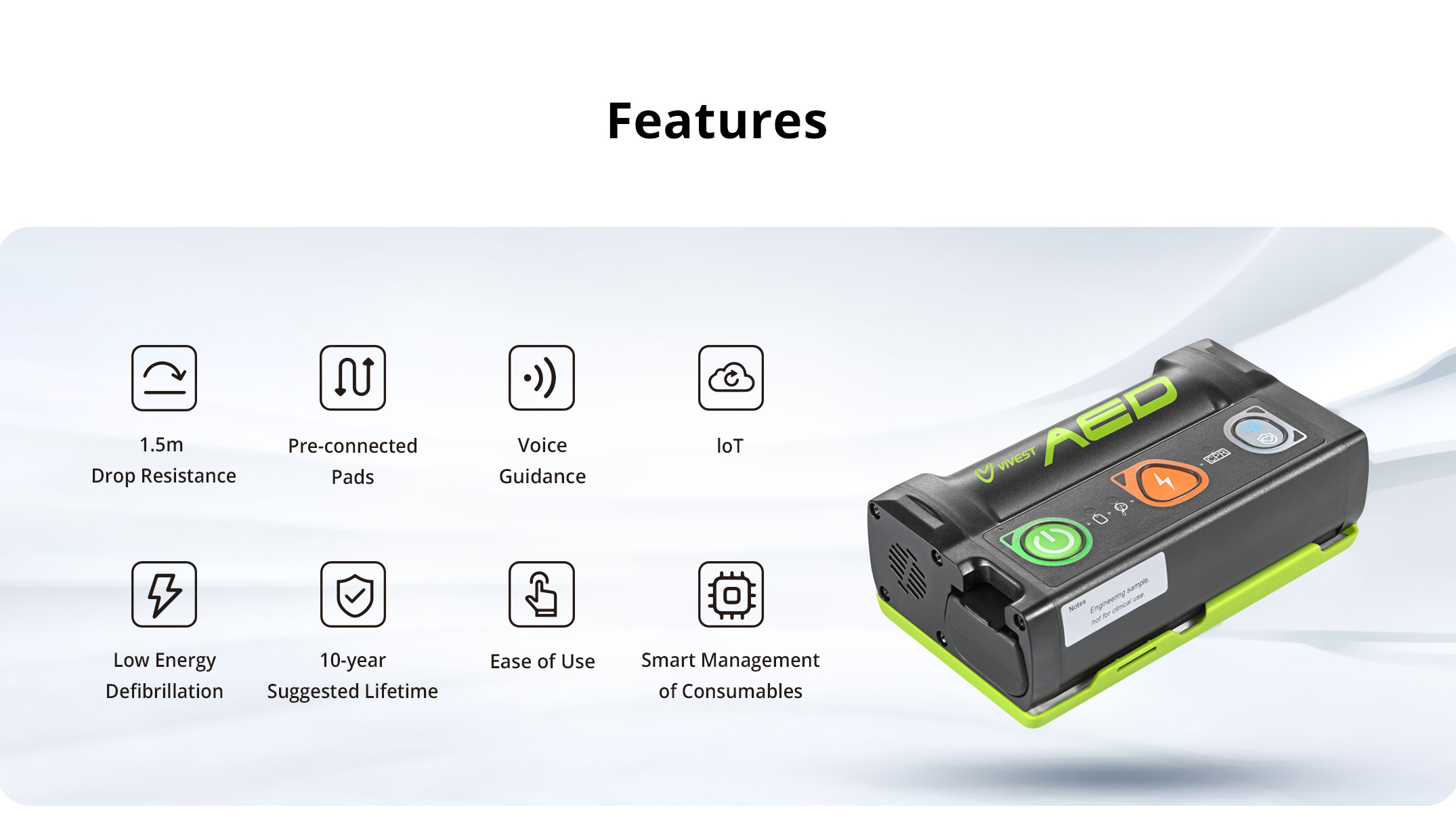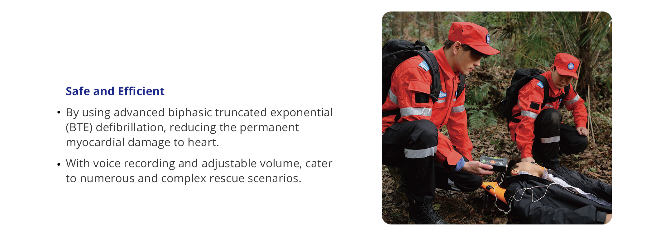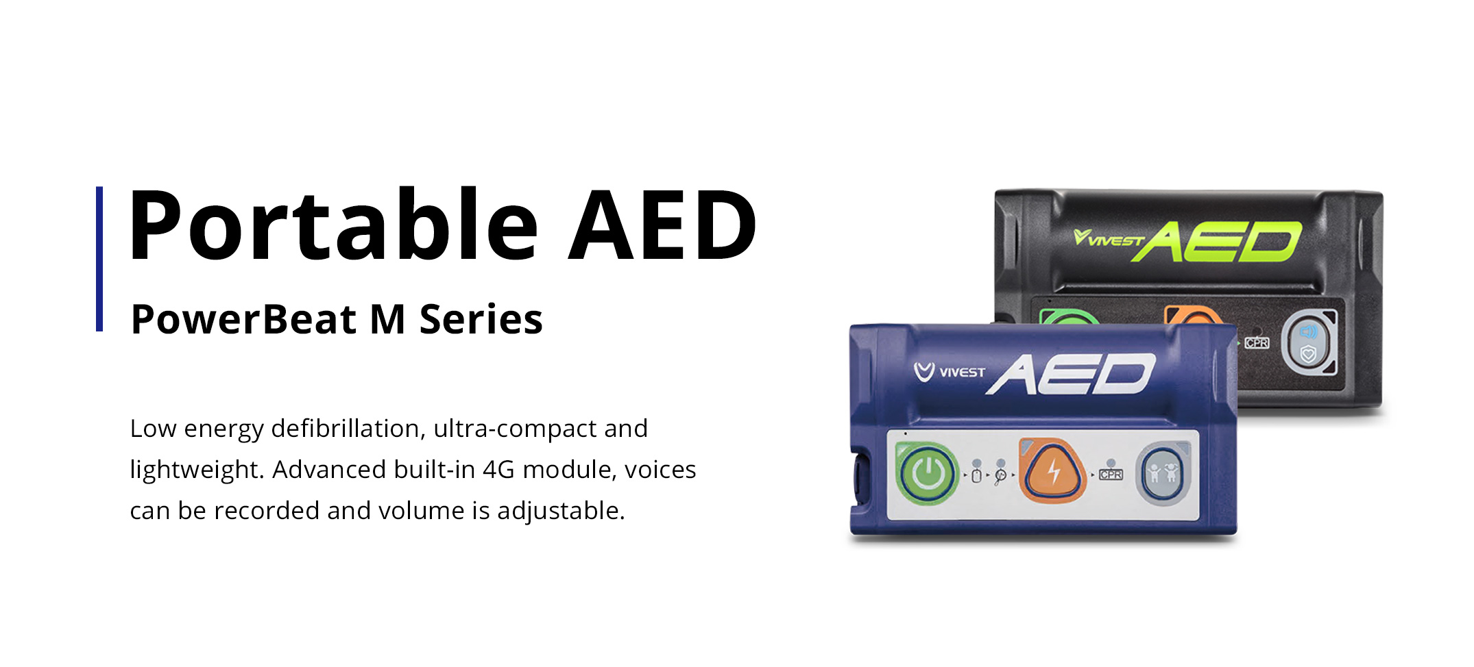 Low energy defibrillation, ultra-compact and lightweight. M1 with continuous VT/VF detection mode, M3 with adult / child mode switch. Advanced built-in 4G module, voices can be recorded and volume is adjustable.