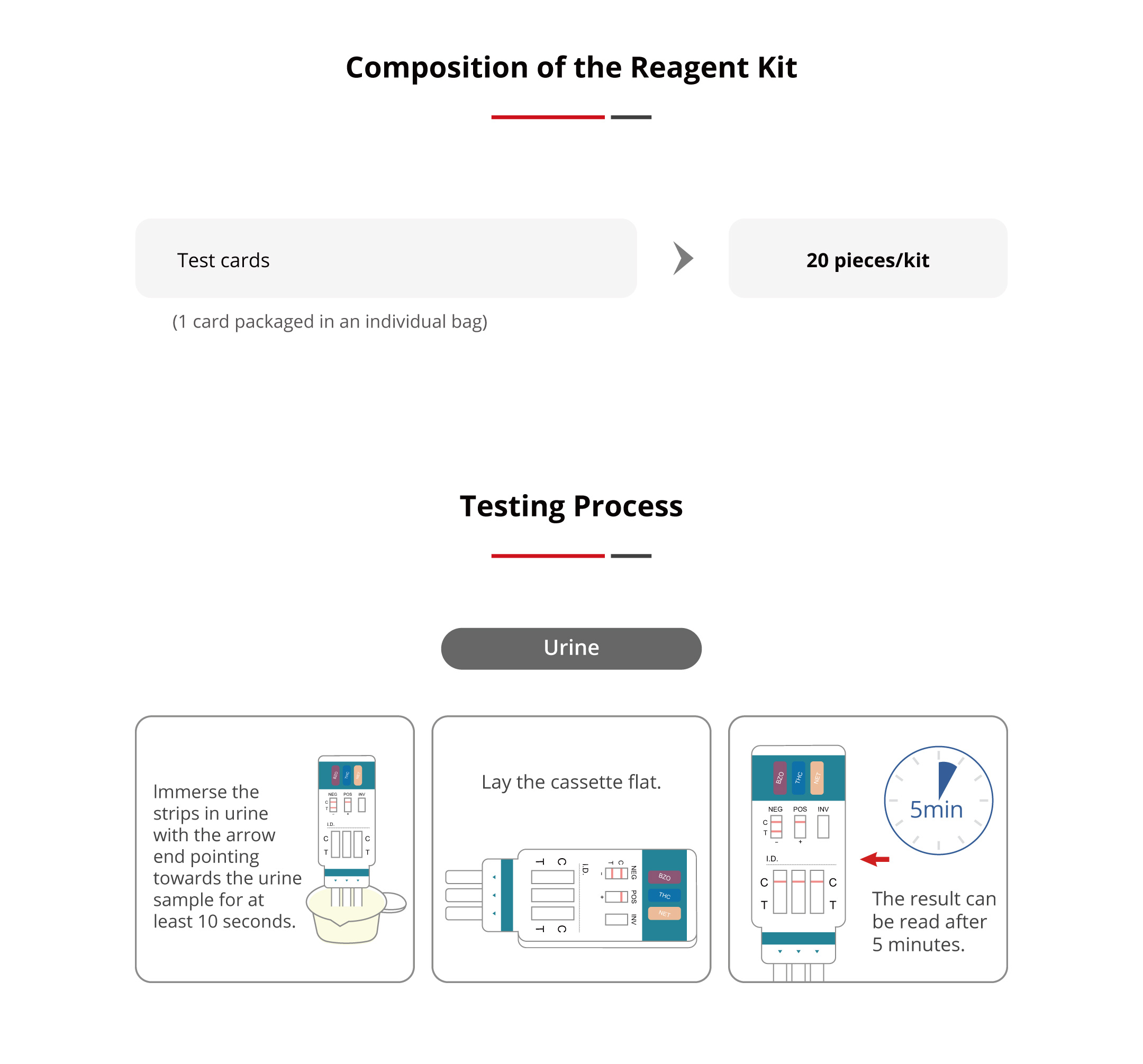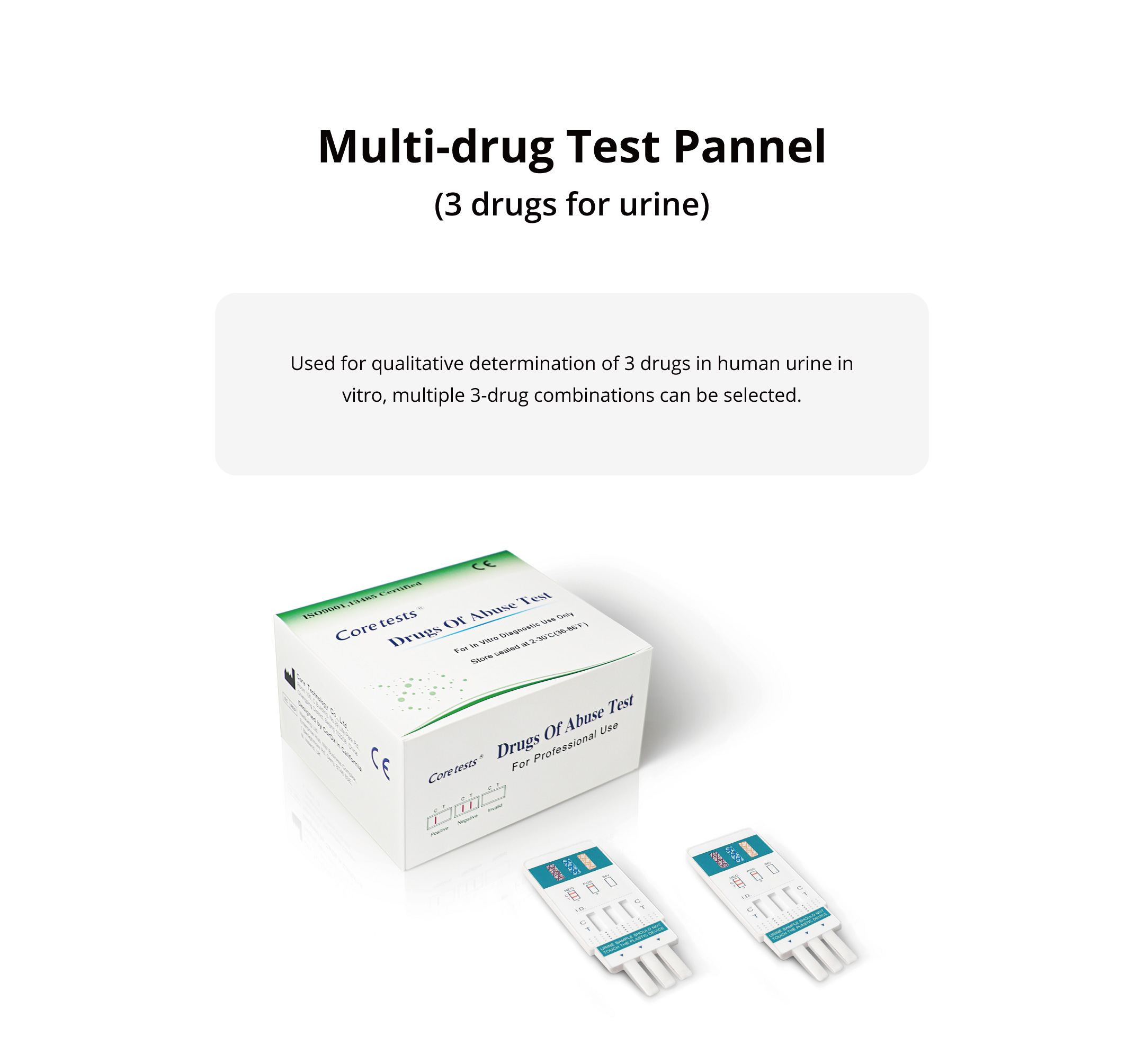 Used for qualitative determination of 3 drugs in human urine in vitro, multiple 3-drug combinations can be selected.