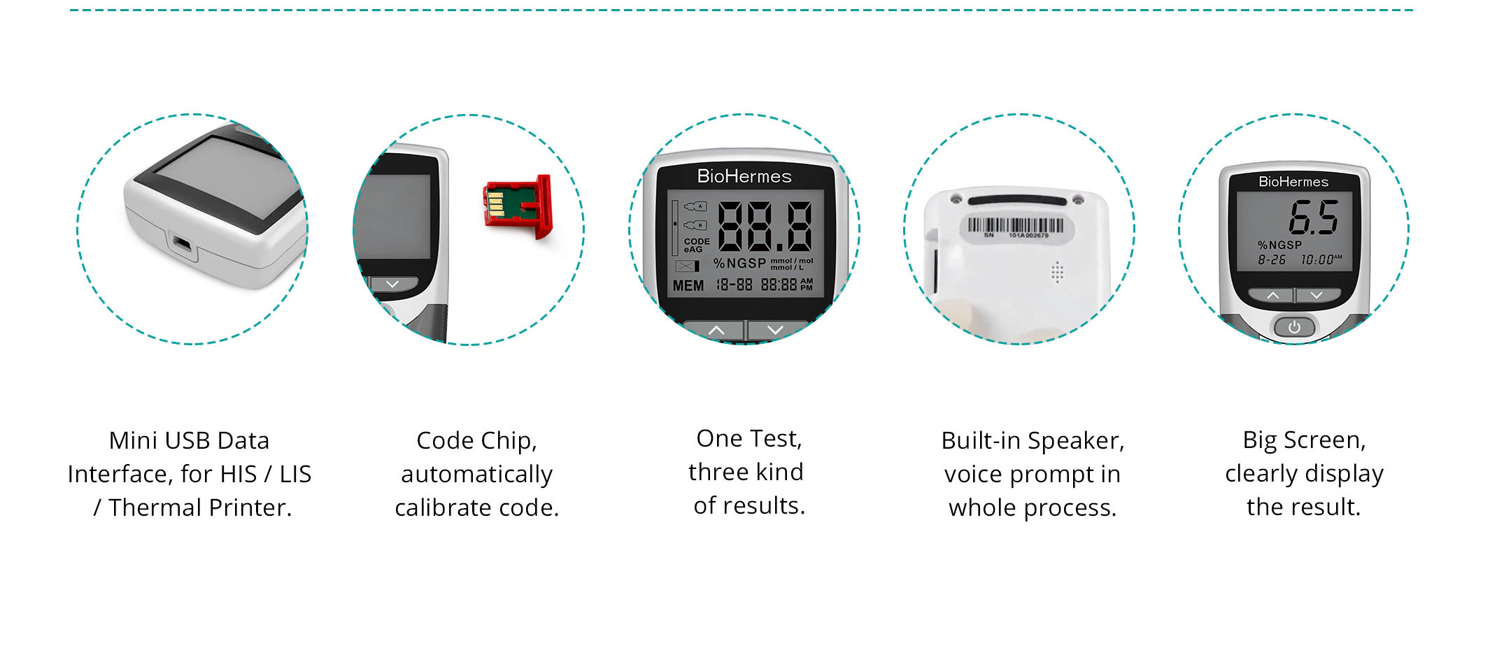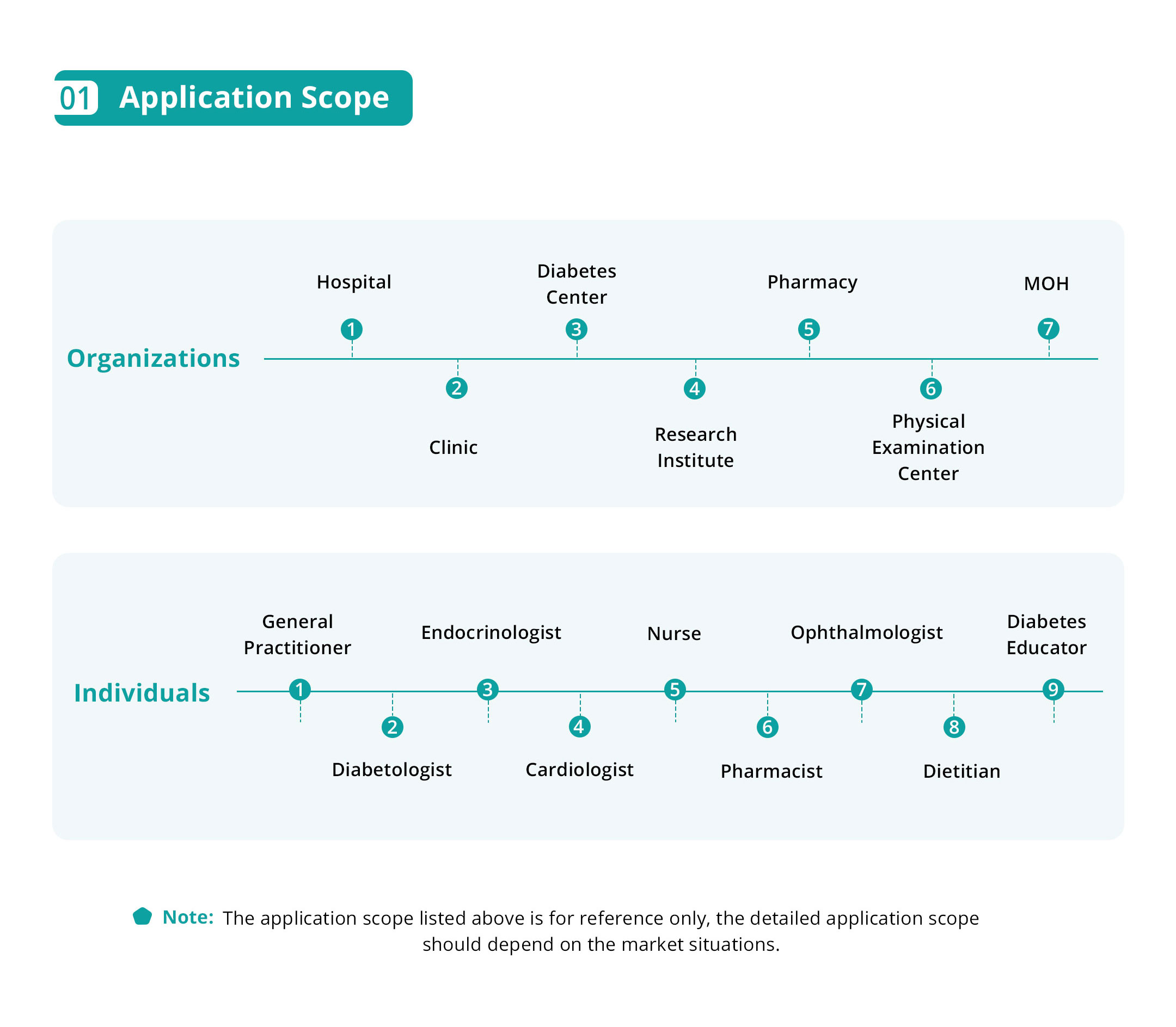 Dual use between doctor and patient, extremely simple operation. Extremely suitable for various primary medical care institutions, thus greatly improving the diabetes screening and management conditions of people nearby.
