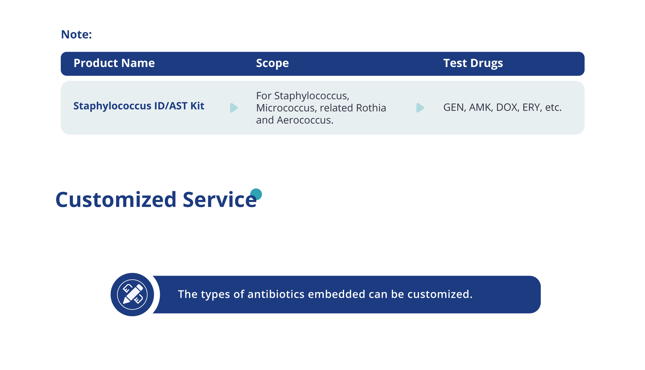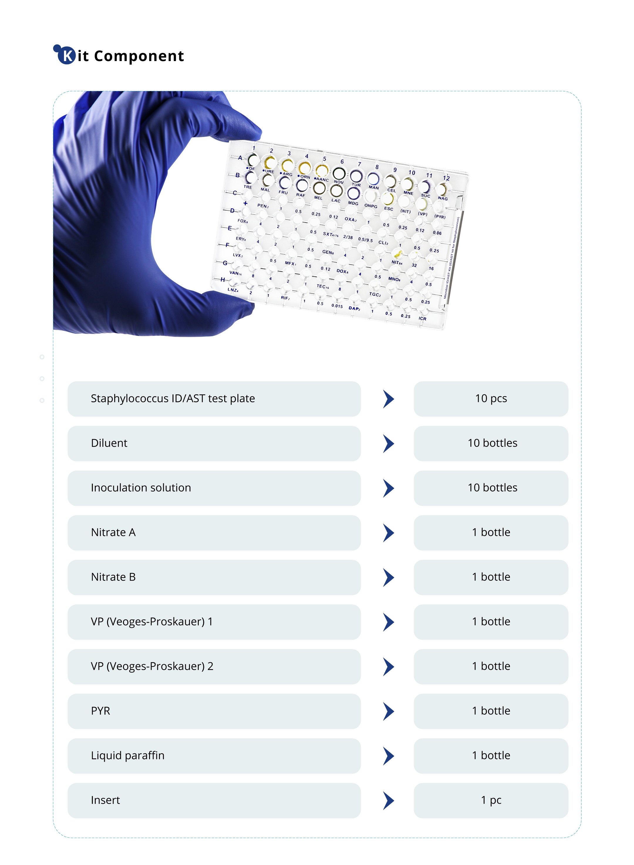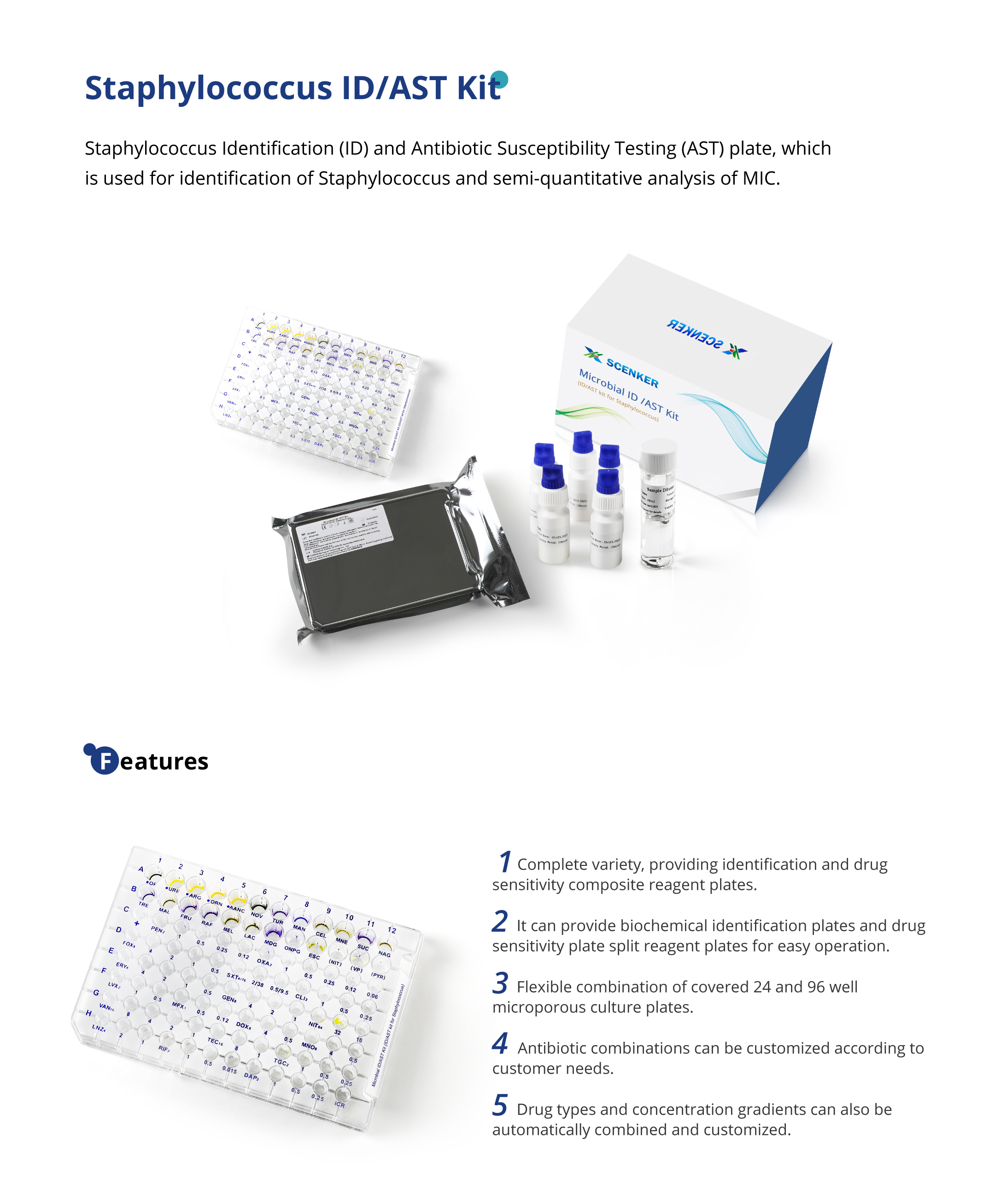 Staphylococcus Identification (ID) and Antibiotic Susceptibility Testing (AST) plate, which is used for identification of Staphylococcus and semi-quantitative analysis of MIC.