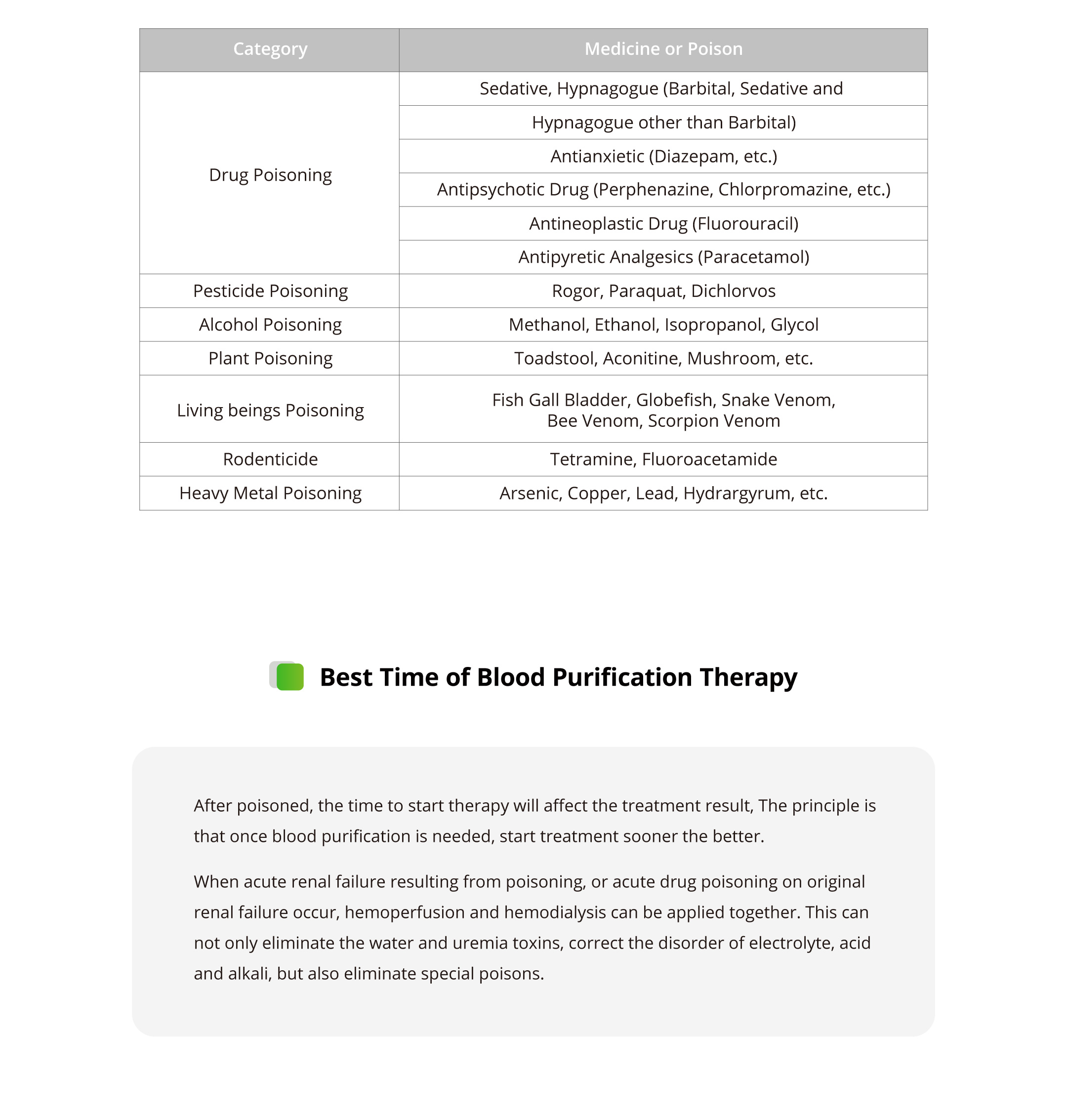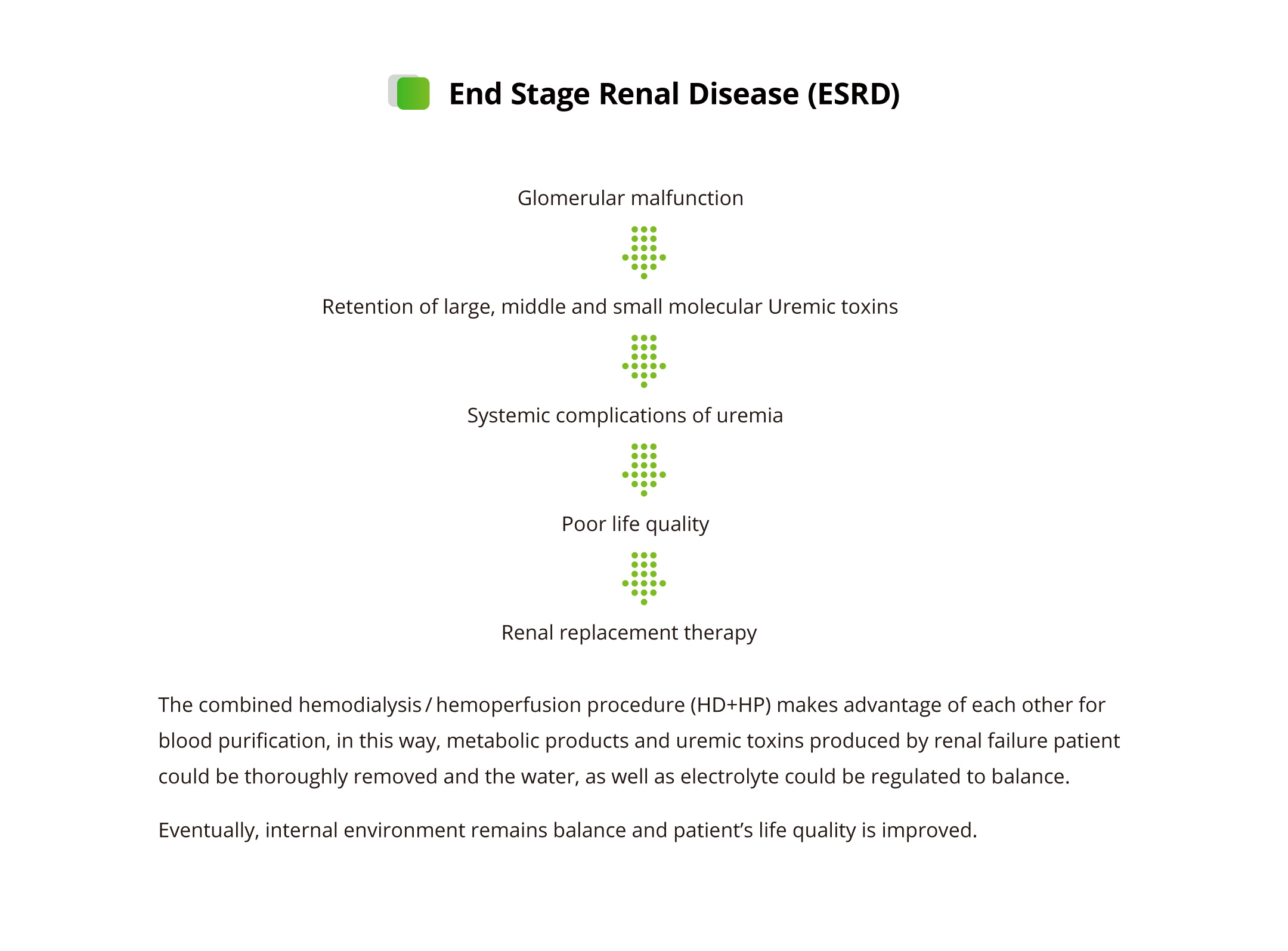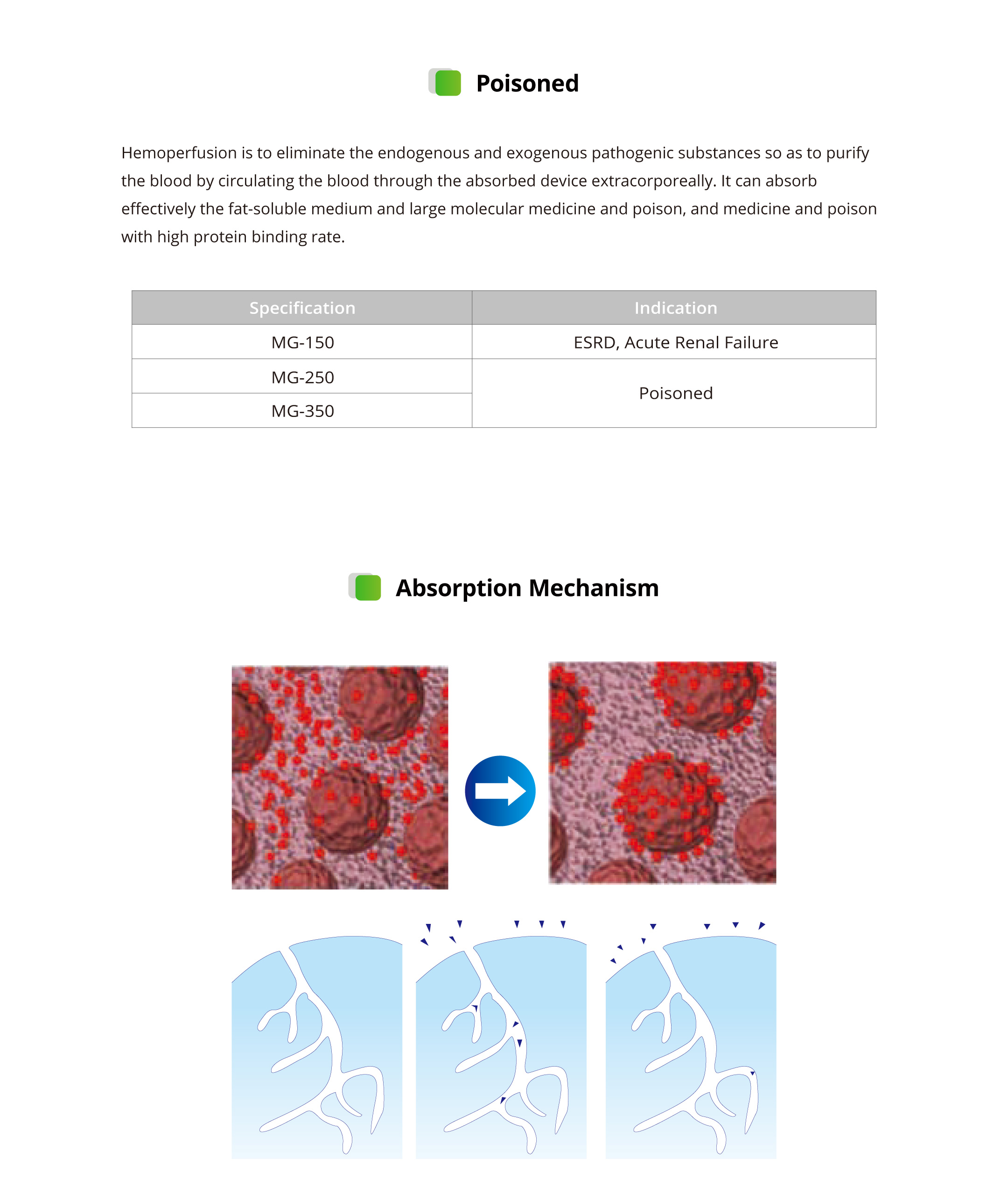 Mainly used to treat renal failure, chronic kidney disease, uremia. having the ability to absorb macromolecular toxins and protein binding toxoids in the body of patients.