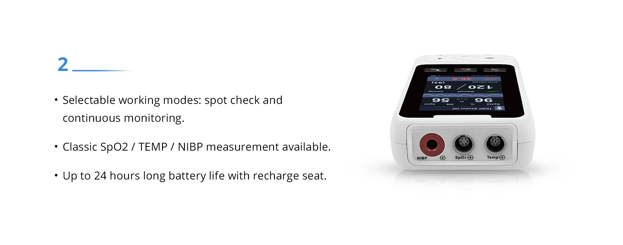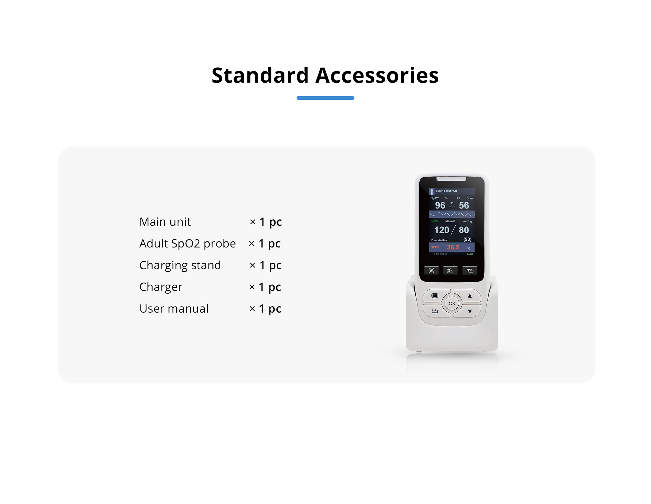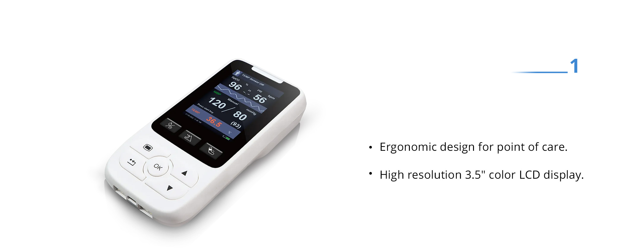 Single SpO2 version 280g, SpO2 + NIBP + TEMP version 370g |