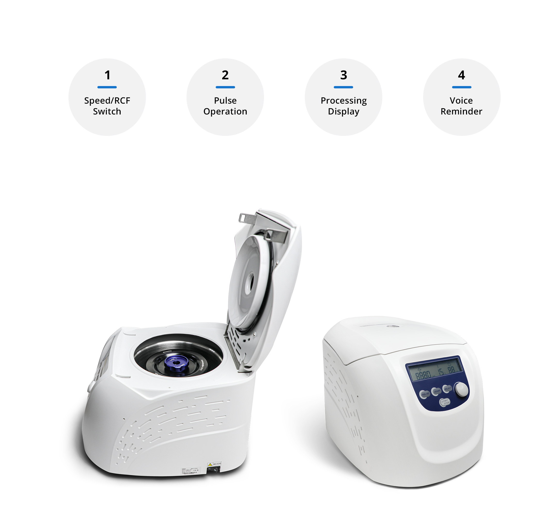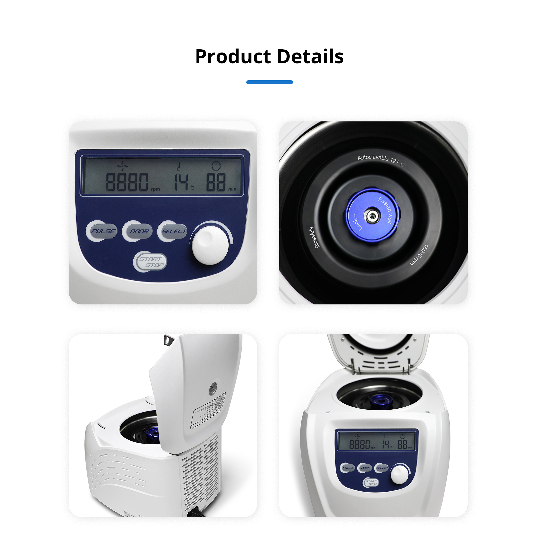 Special multi-flow air cooling design with patent ensures fast cooling of the rotor and low energy consumption. High strength aluminum alloy rotor can be fully autoclaved for unlimited service life.