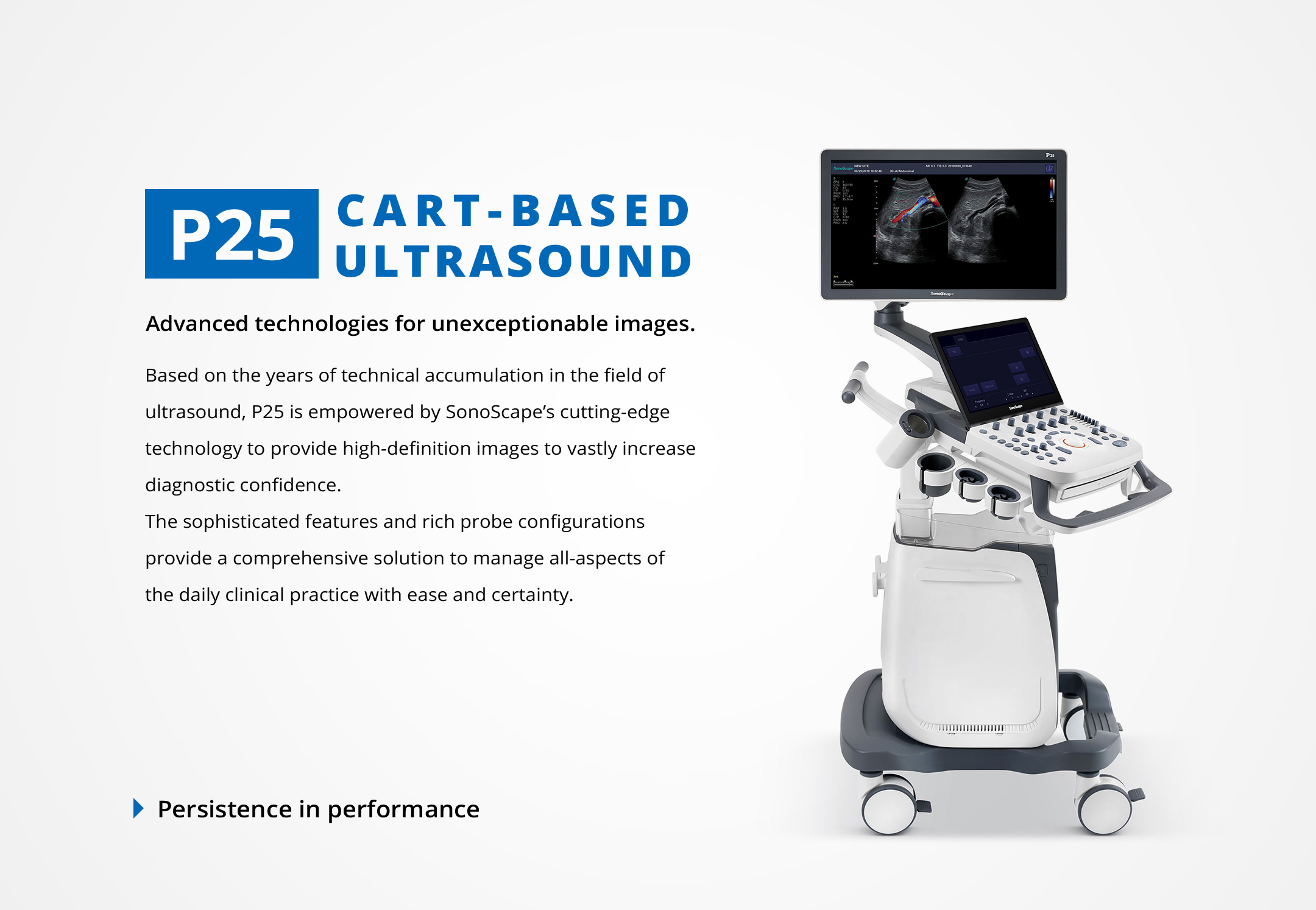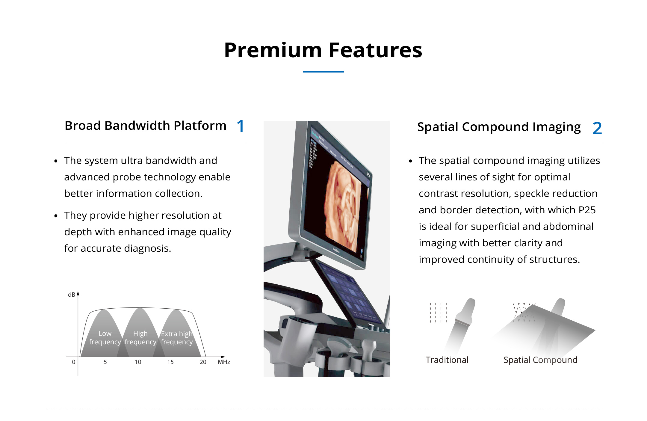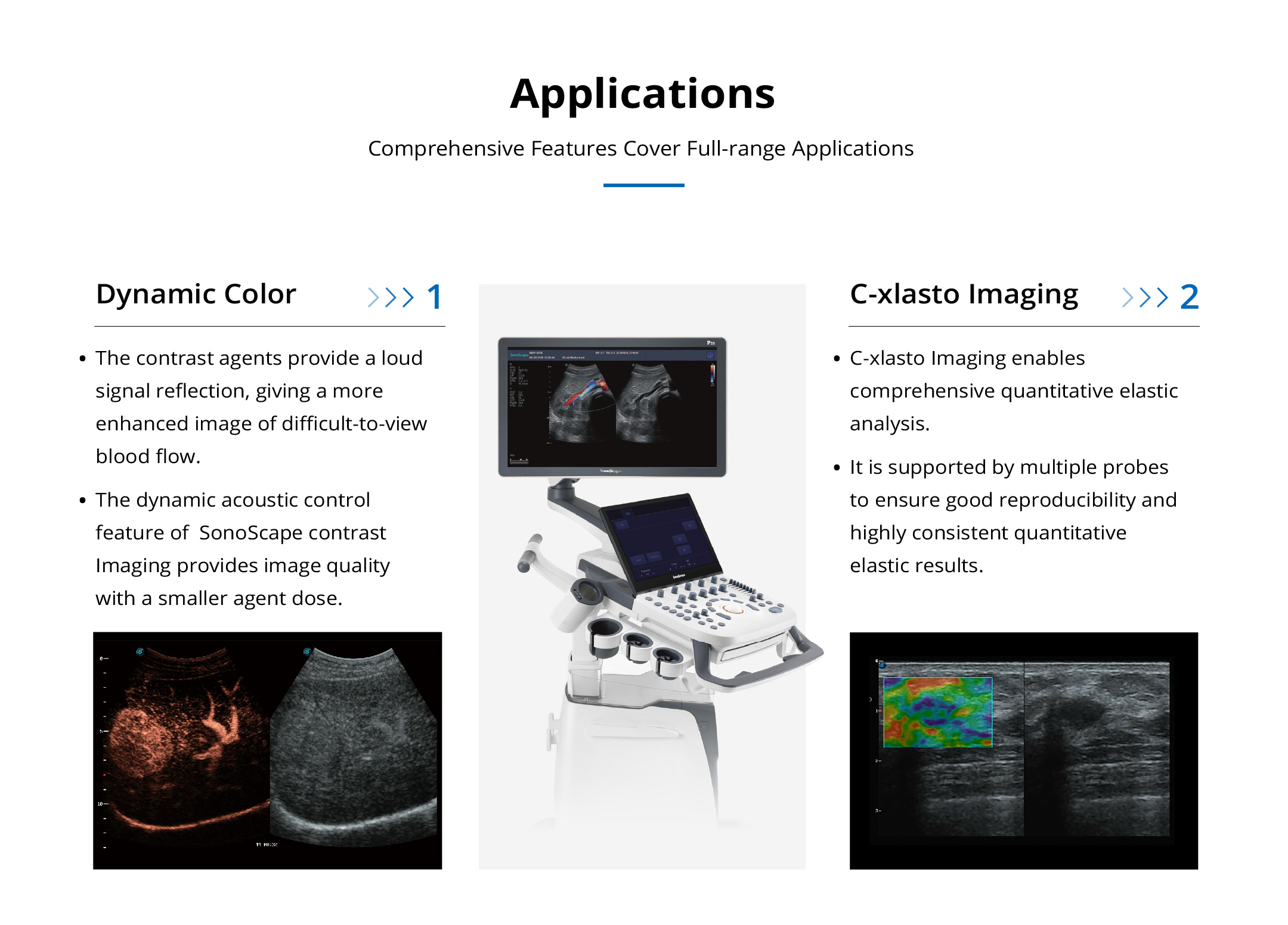 Advanced technologies for unexceptionable images. Comprehensive features cover full-range applications. Specialty probes for specific needs.