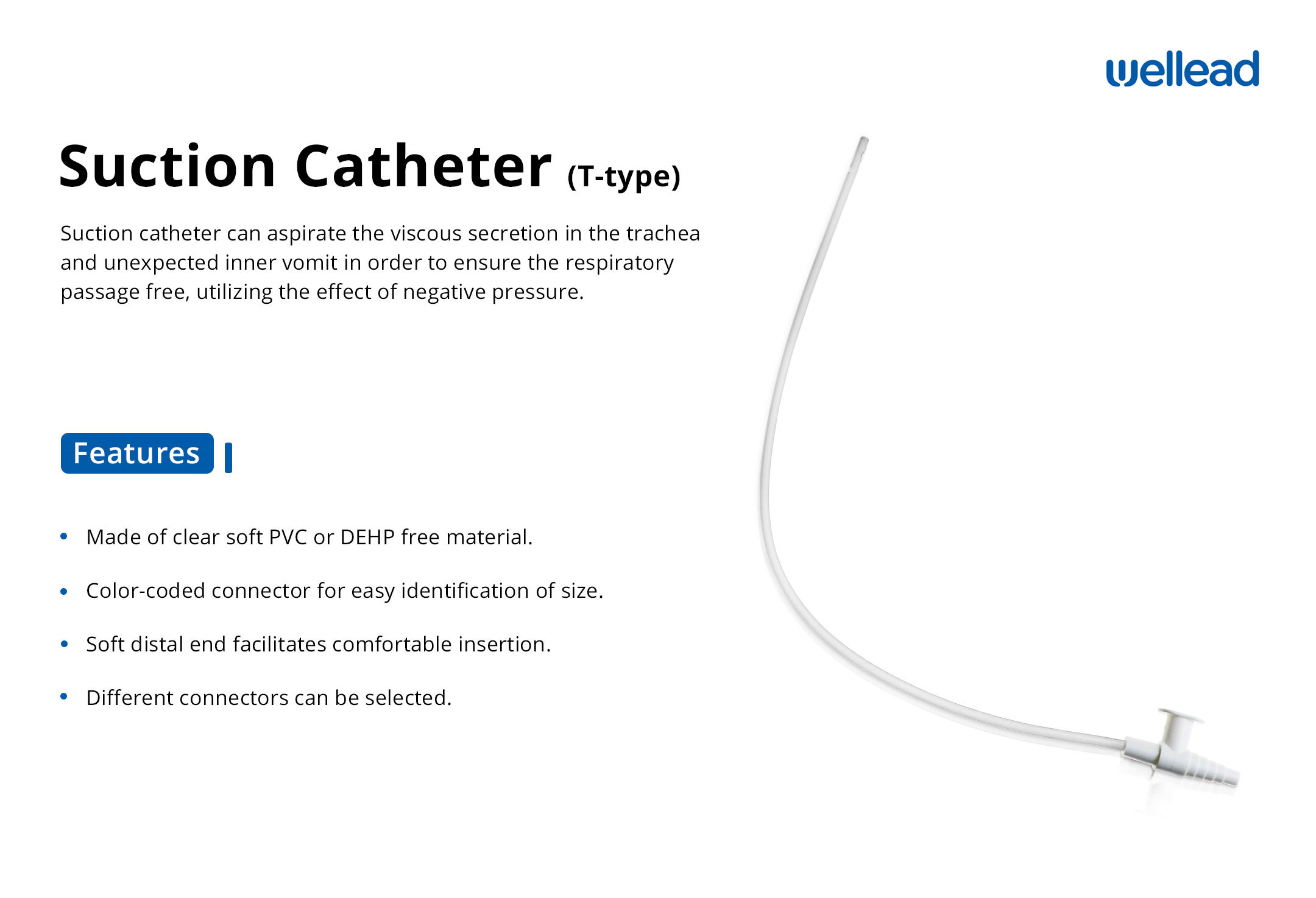 Suction catheter can aspirate the viscous secretion in the trachea and unexpected inner vomit in order to ensure the respiratory passage free, utilizing the effect of negative pressure.