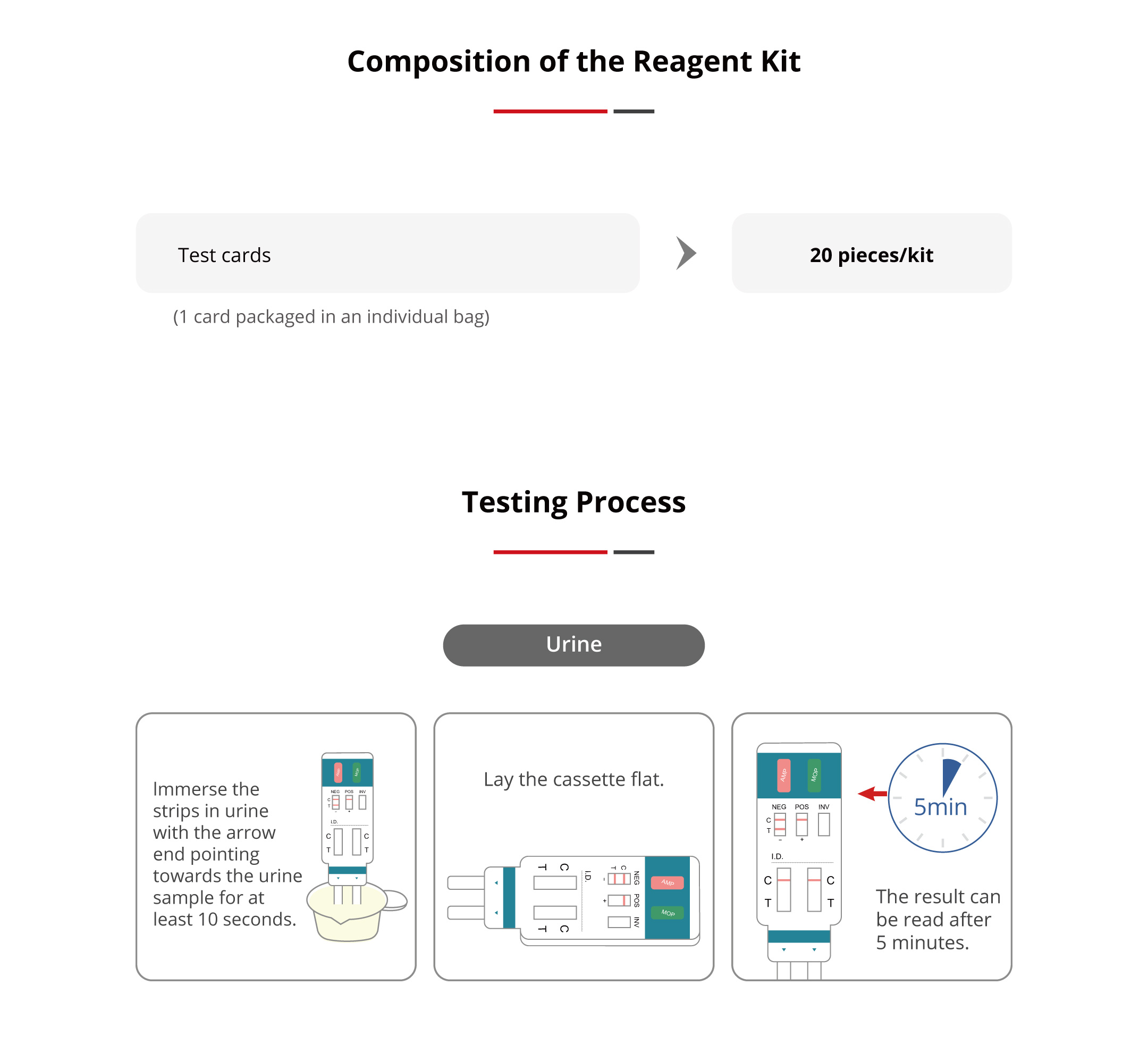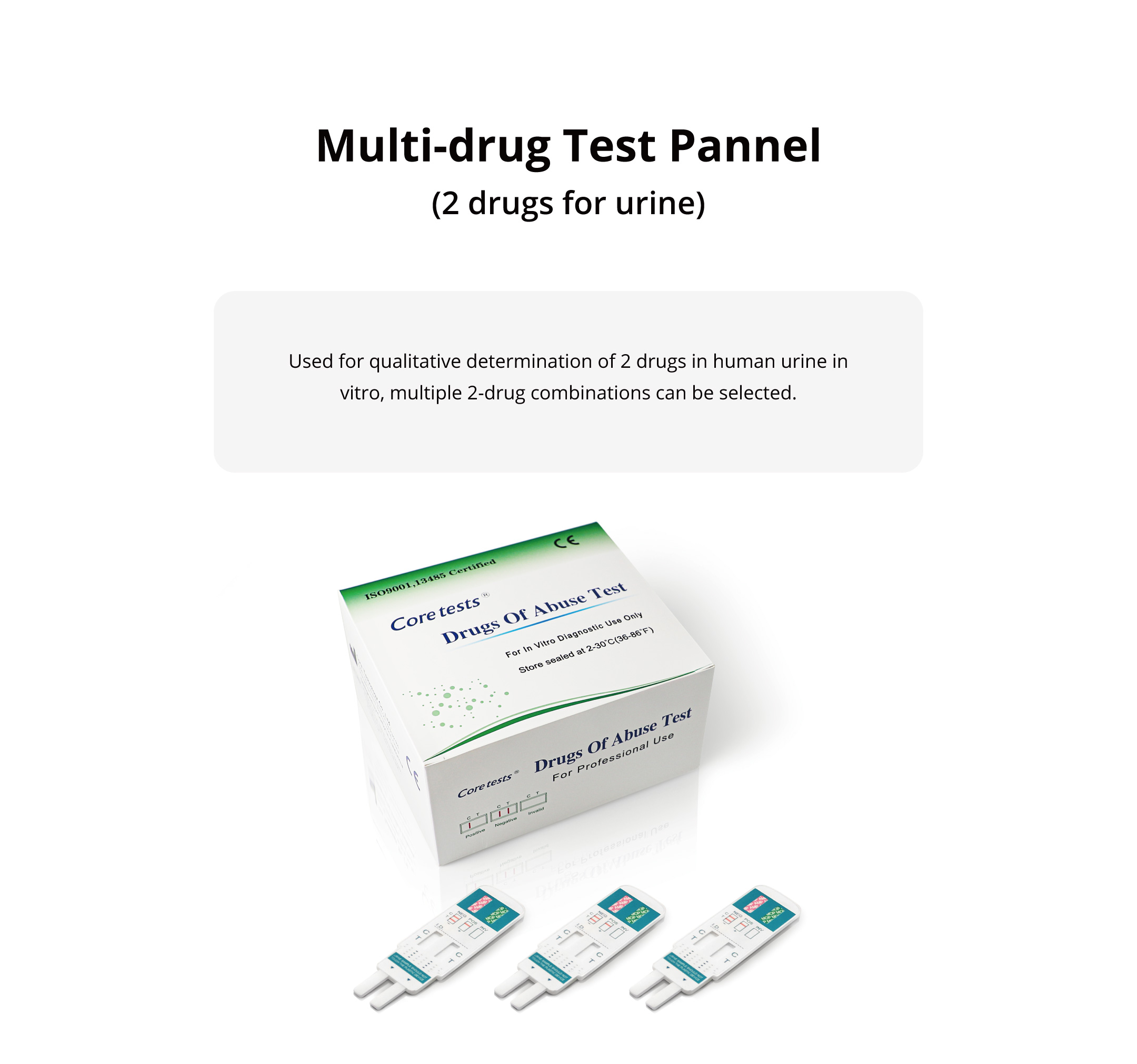 Used for qualitative determination of 2 drugs in human urine in vitro, multiple 2-drug combinations can be selected.