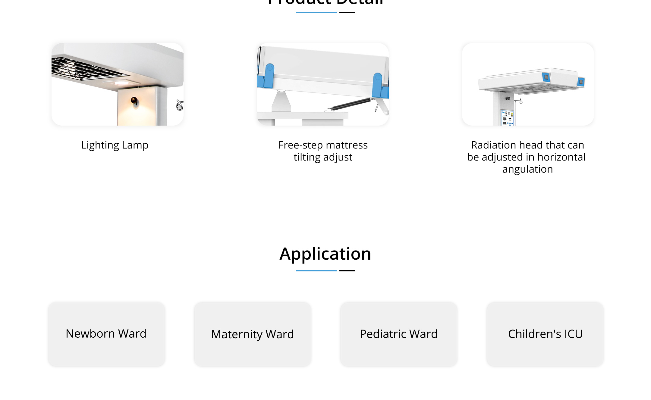 Skin temp. and manual control by micro-computer & Over temperature alarm & Available adjustment of radiator and mattress tilting.