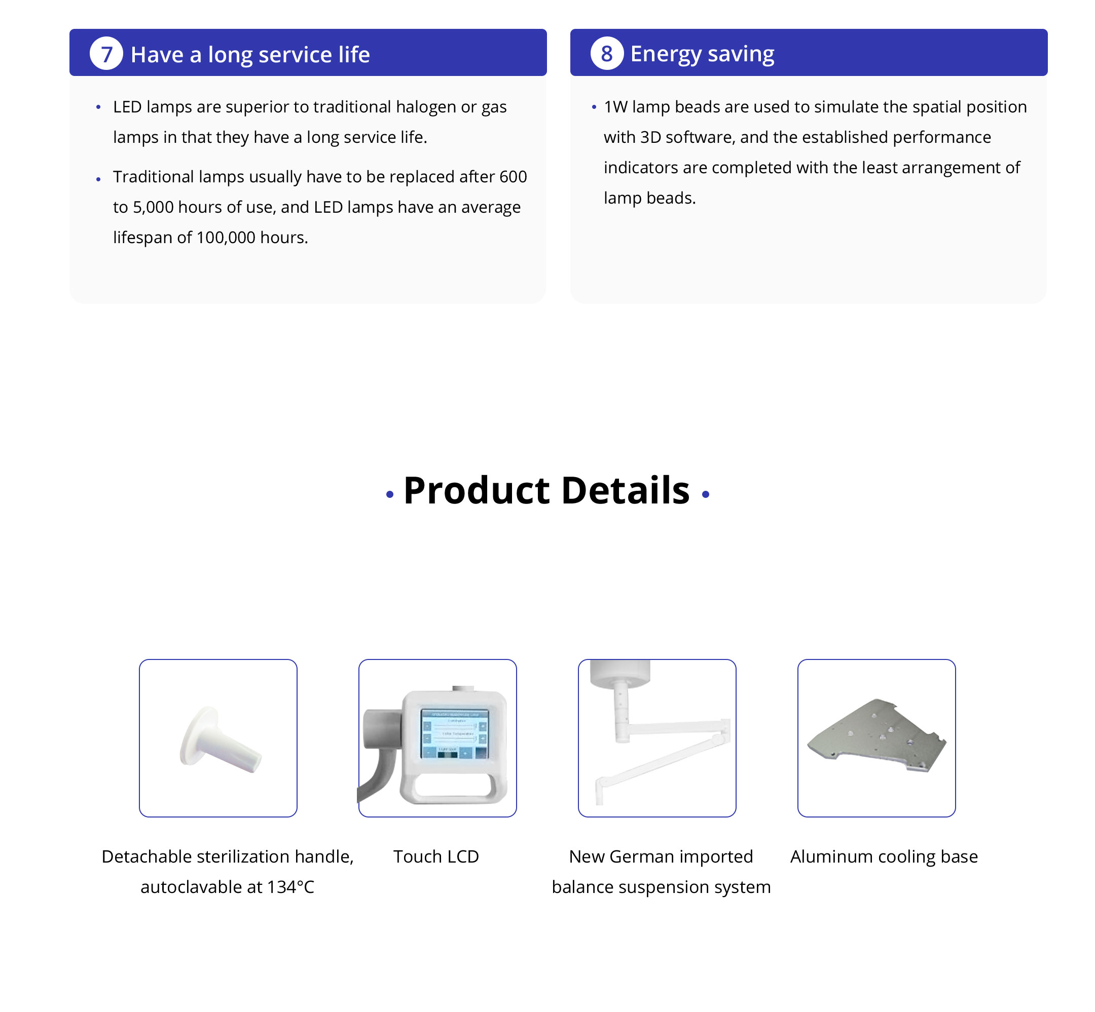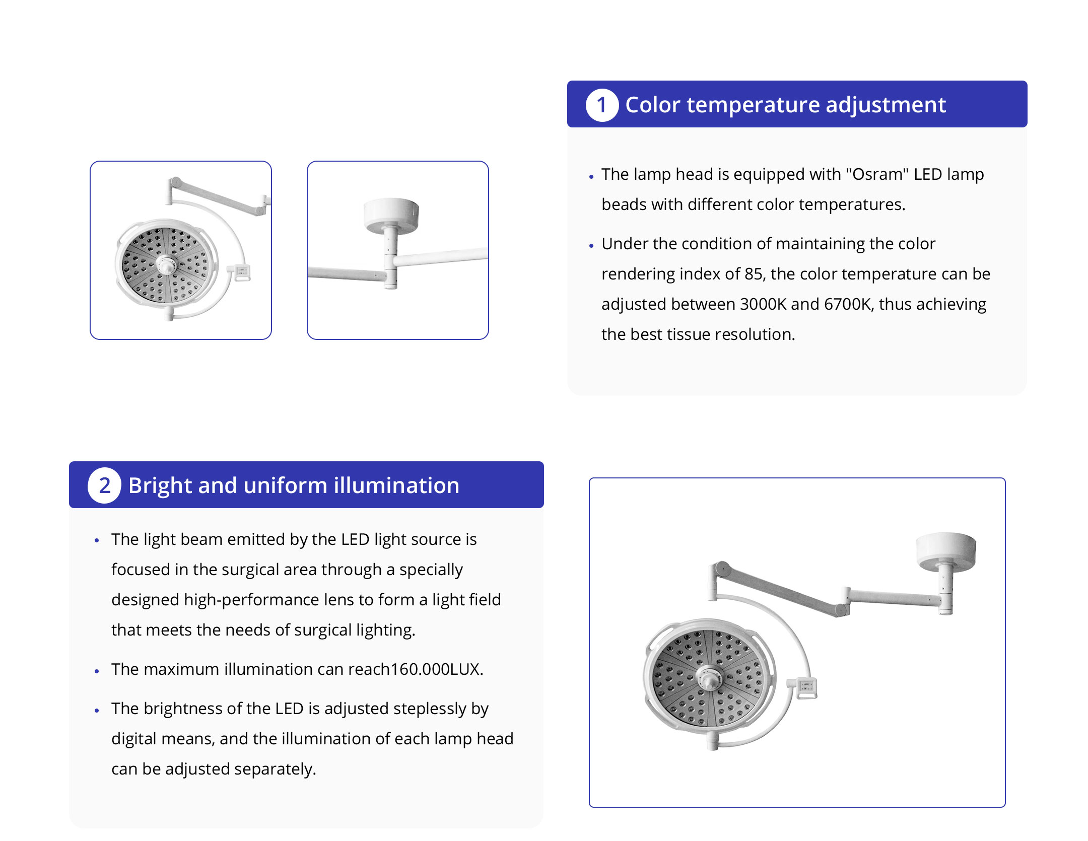 The lamp head is equipped with "Osram" LED lamp beads with different color temperatures.